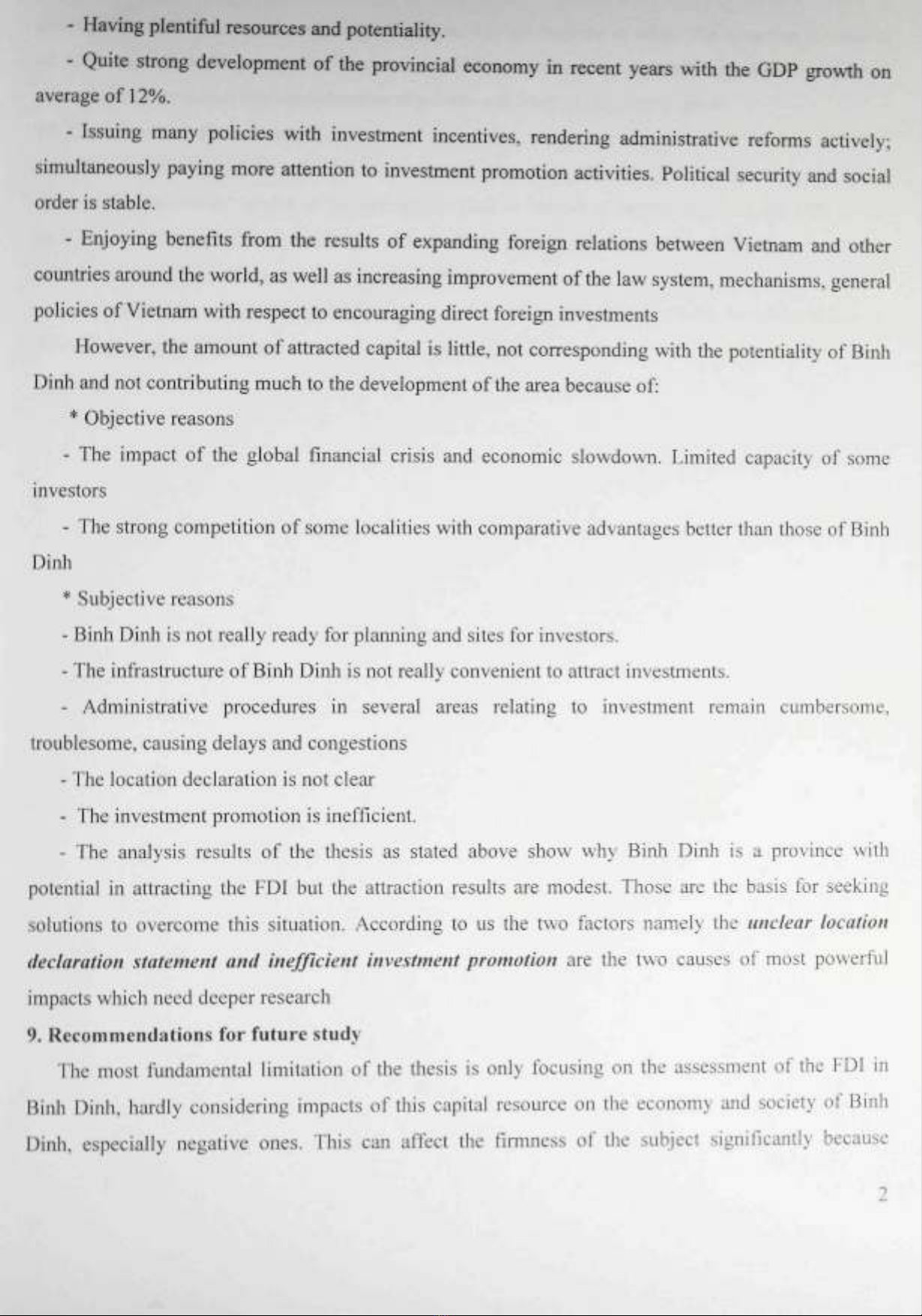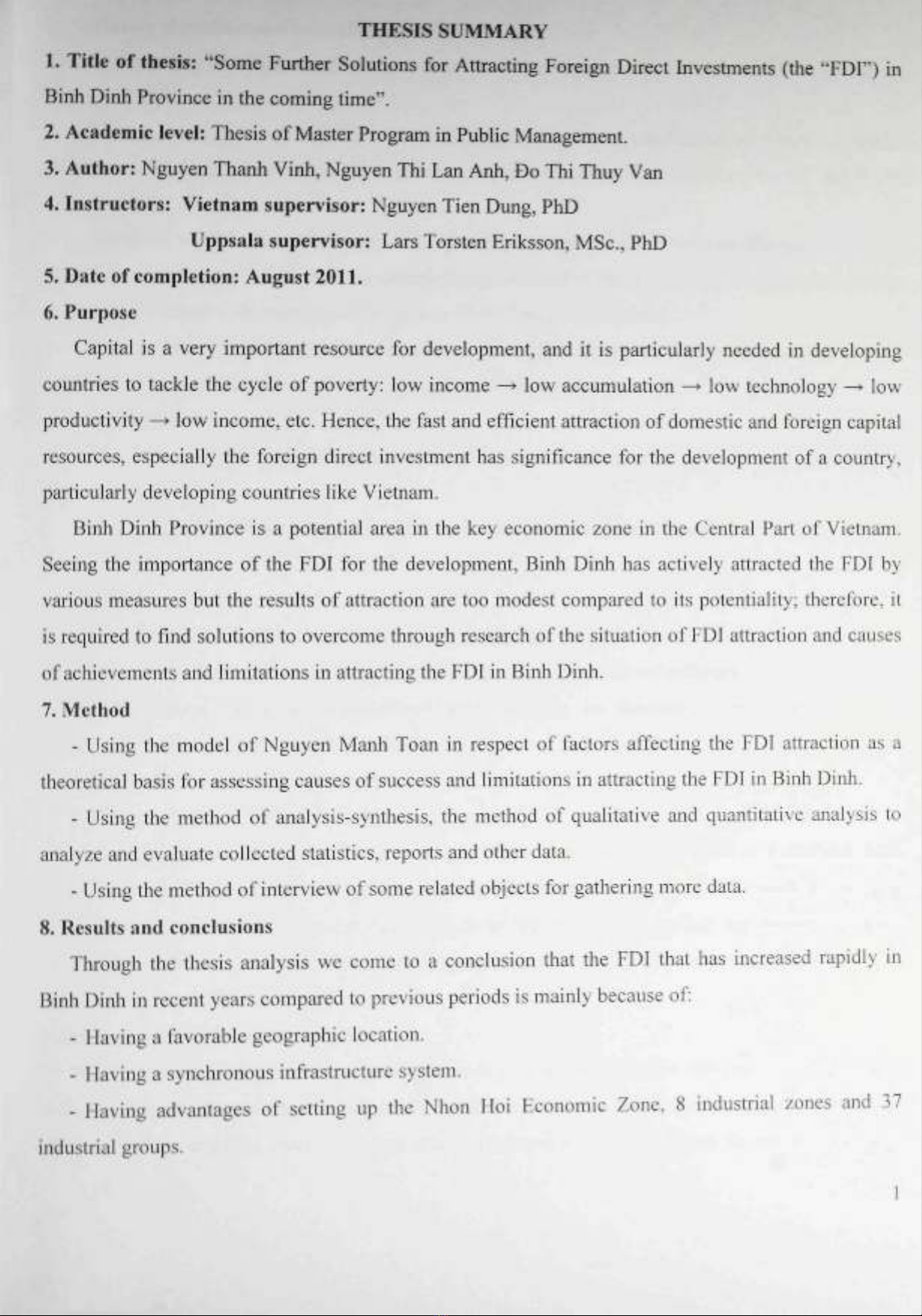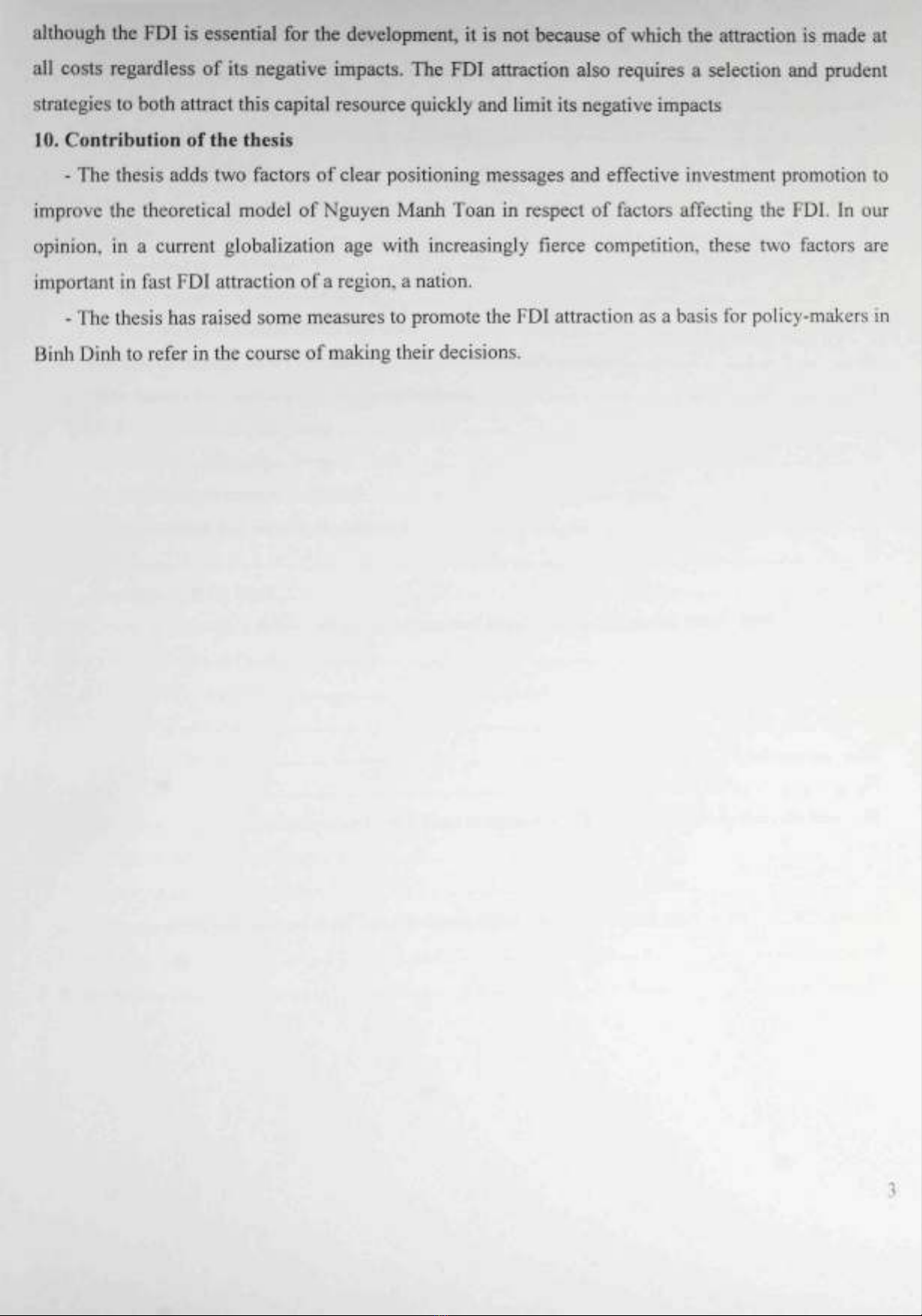 - The thesis has raised some measures to promote the FDI attraction as a basis for policy-makers in