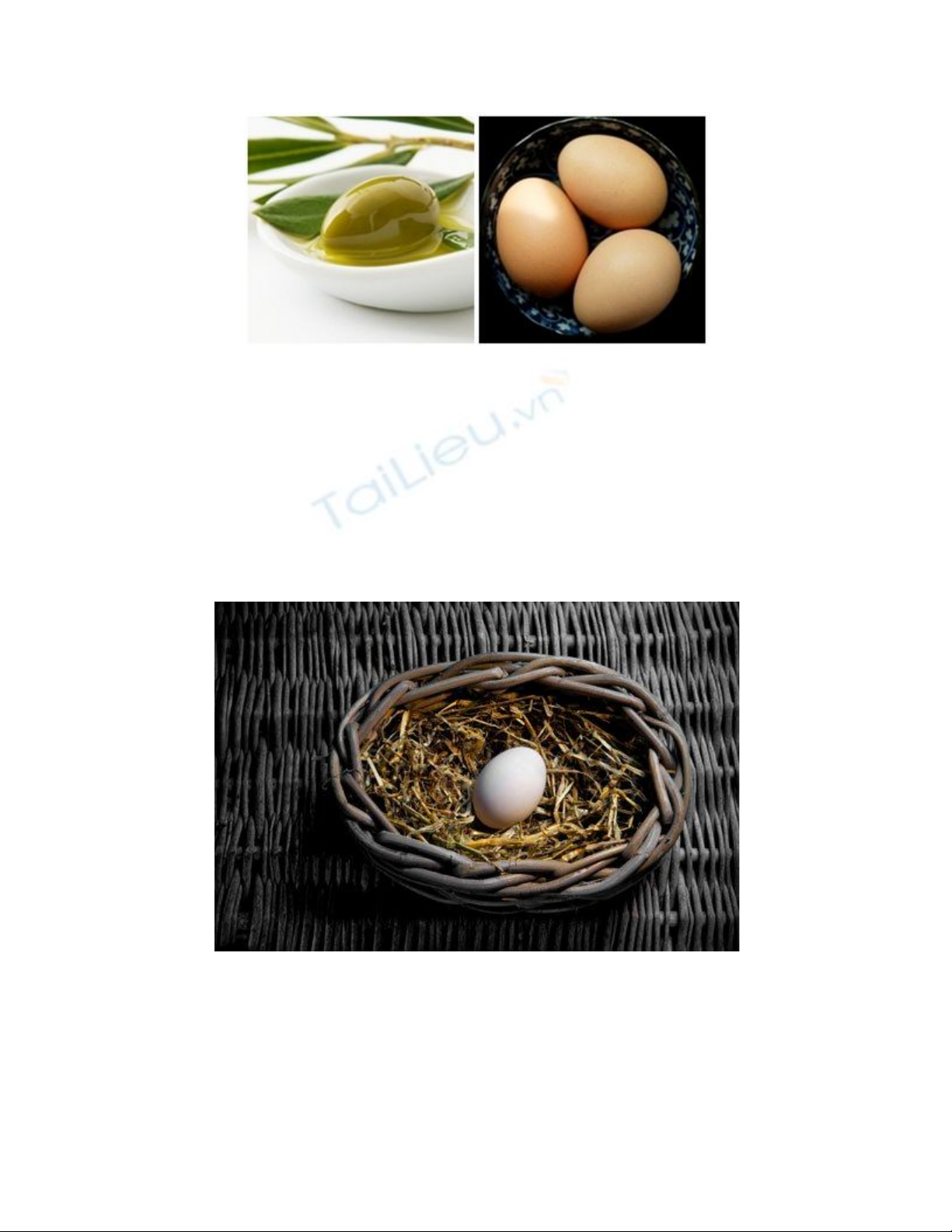 Chuẩn bị từ 1-2 lòng trắng trứng tùy vào độ dày và dài của tóc bạn. Đánh tan và thoa lên tóc khô.