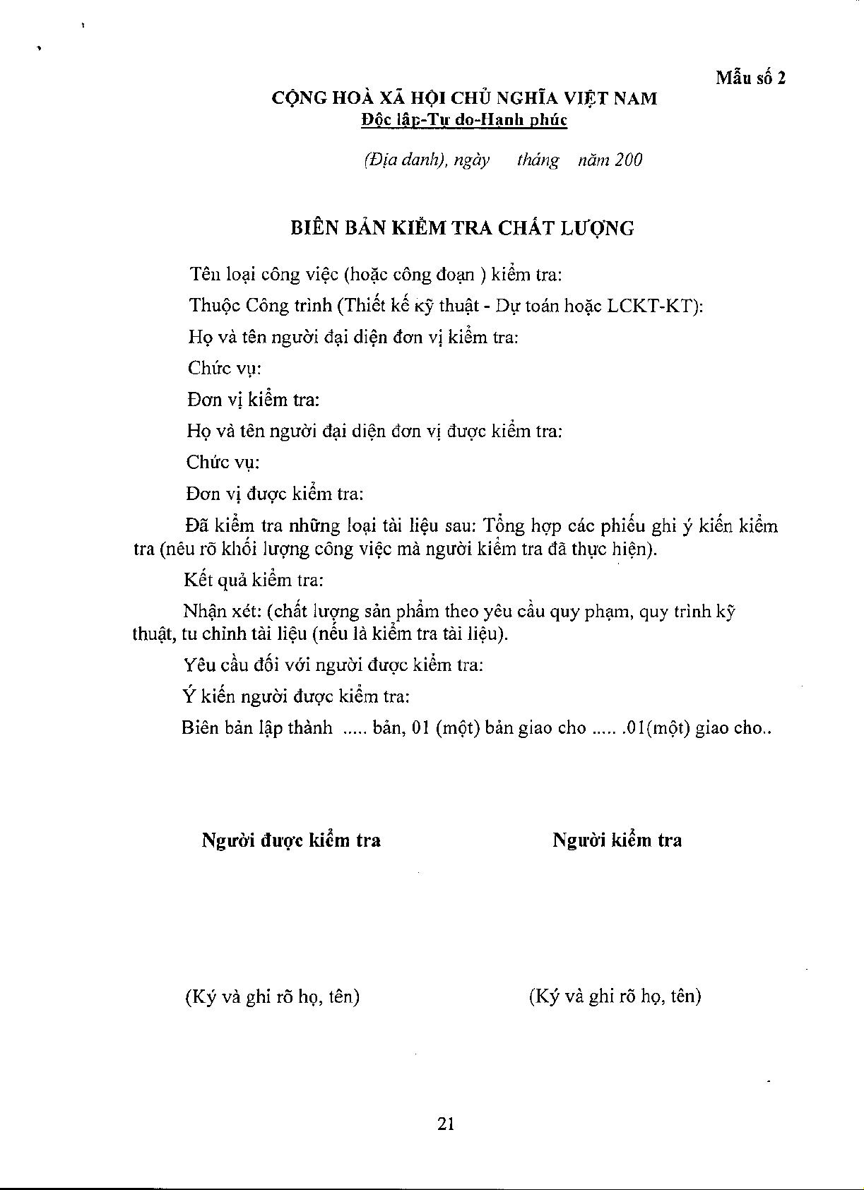 Tài liệu tham khảo của Bộ tài nguyên và môi trường Mẫu biên bản kiểm tra chất lượng