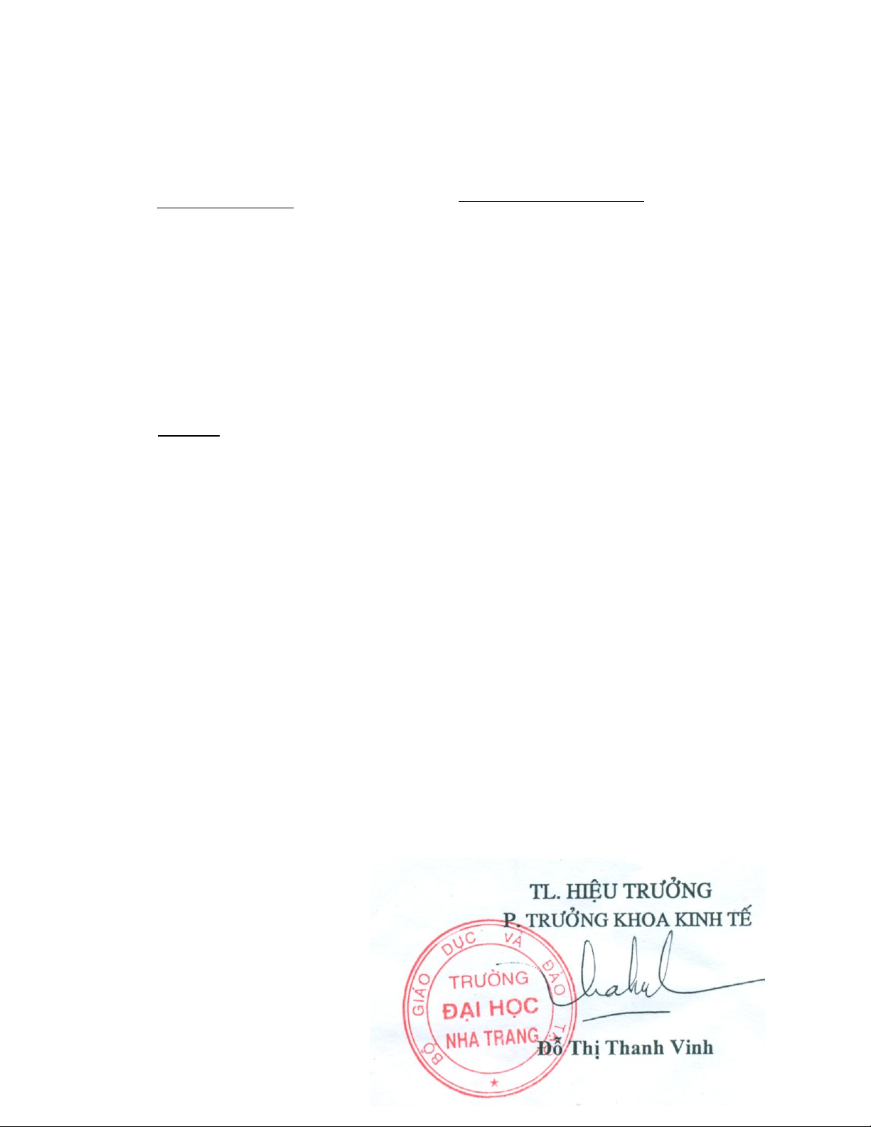 TRƯỜNG ĐẠI HỌC NHA TRANG Độc lập – Tự do – Hạnh phúc