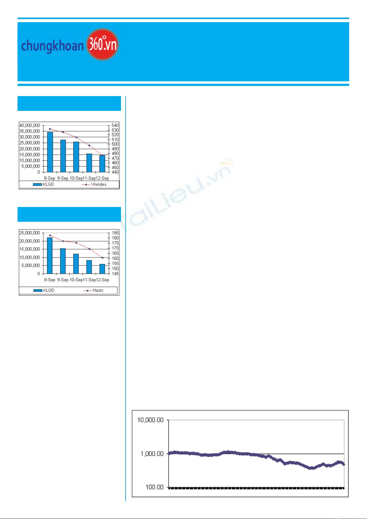 lượng thấp nhất kể từ 18/08/2008 là 14,209,980 cp. Cả tuần chỉ số này đã mất đi