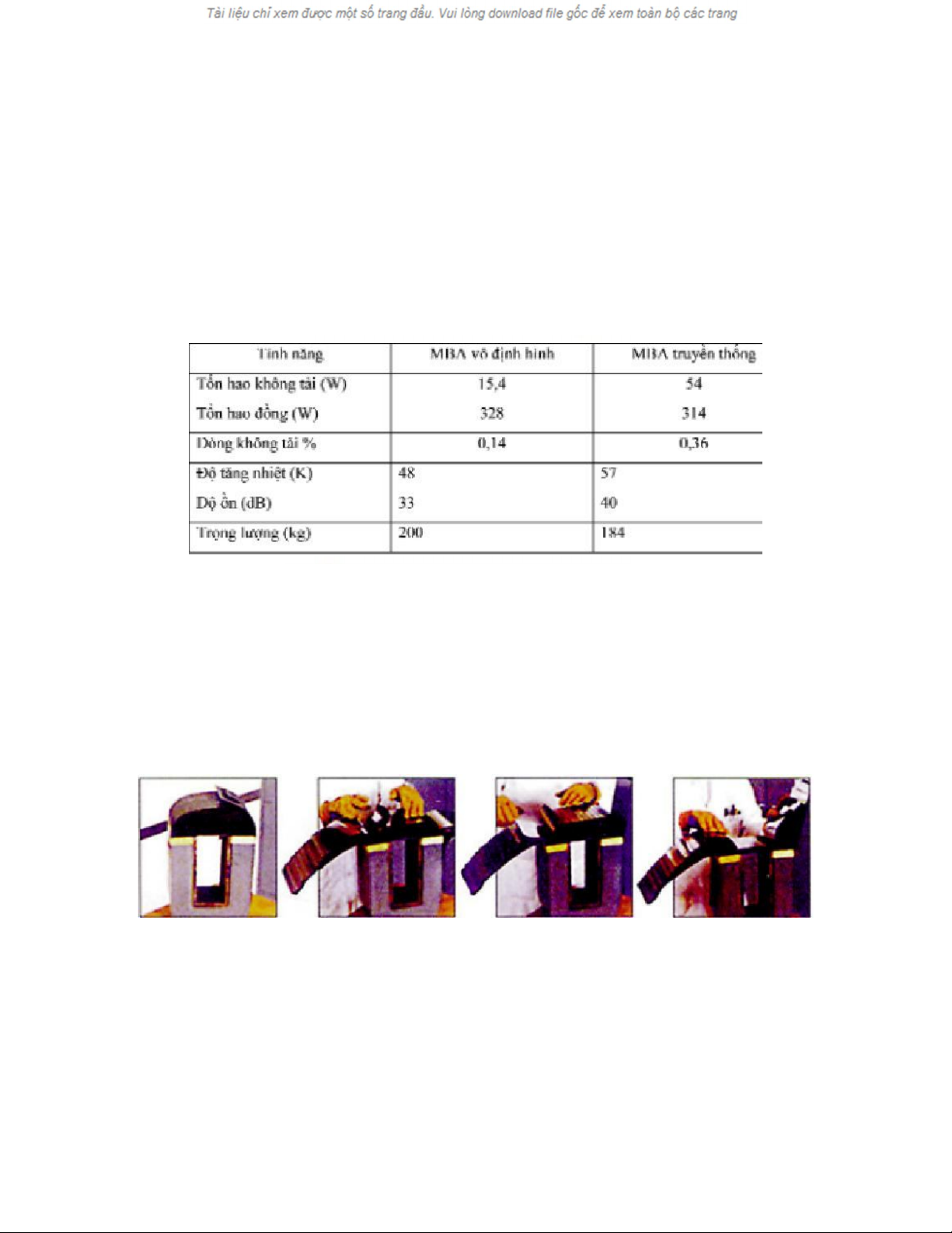 Bảng 2 Tính năng so sánh của MBA 25 kVA, 15/0,4 KV vật liệu từ vô định hình và lá