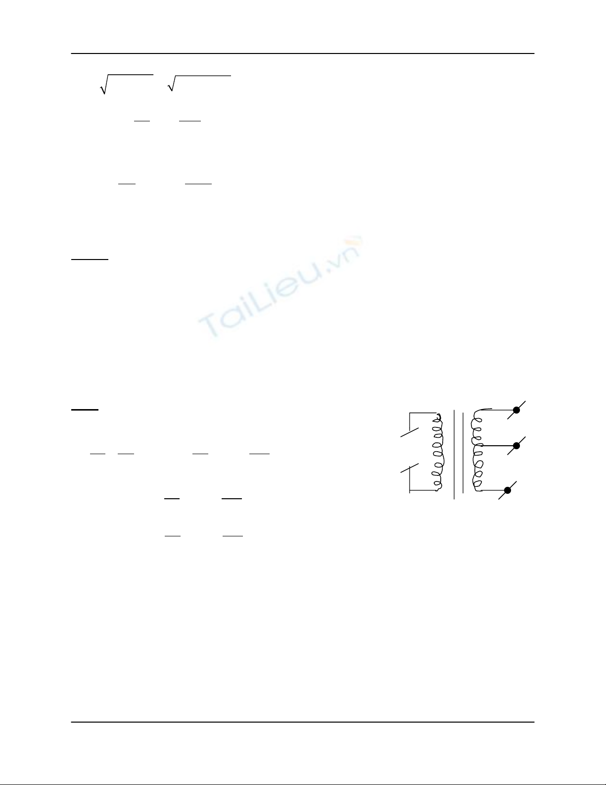 - 2 cuộn dây có số vòng khác nhau. Các cuộn dây có R rất nhỏ và hệ số tự cảm L
