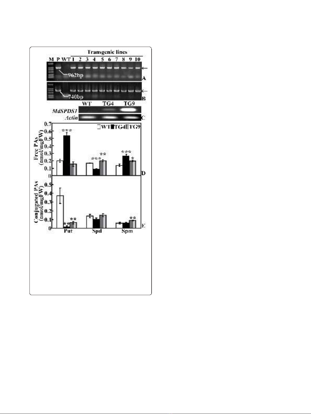 ure 6A). Free Spd in the WT and TG9 was similar and