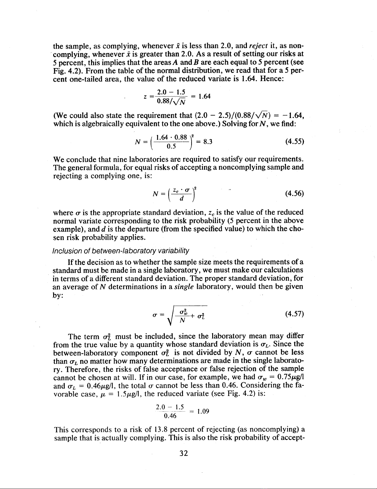 jecting (as noncomplying) a "good" sample J1.5,ugll); and that of accepting