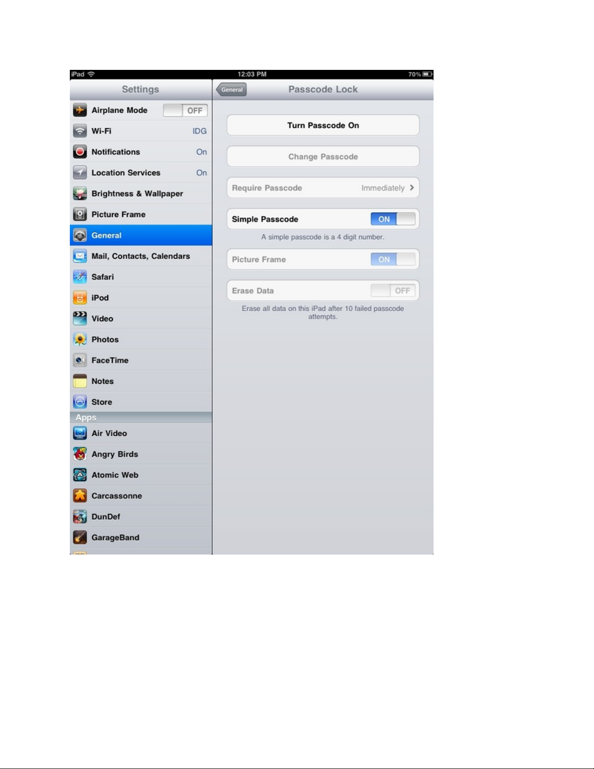 General - Passcode Lock - Erase Data.