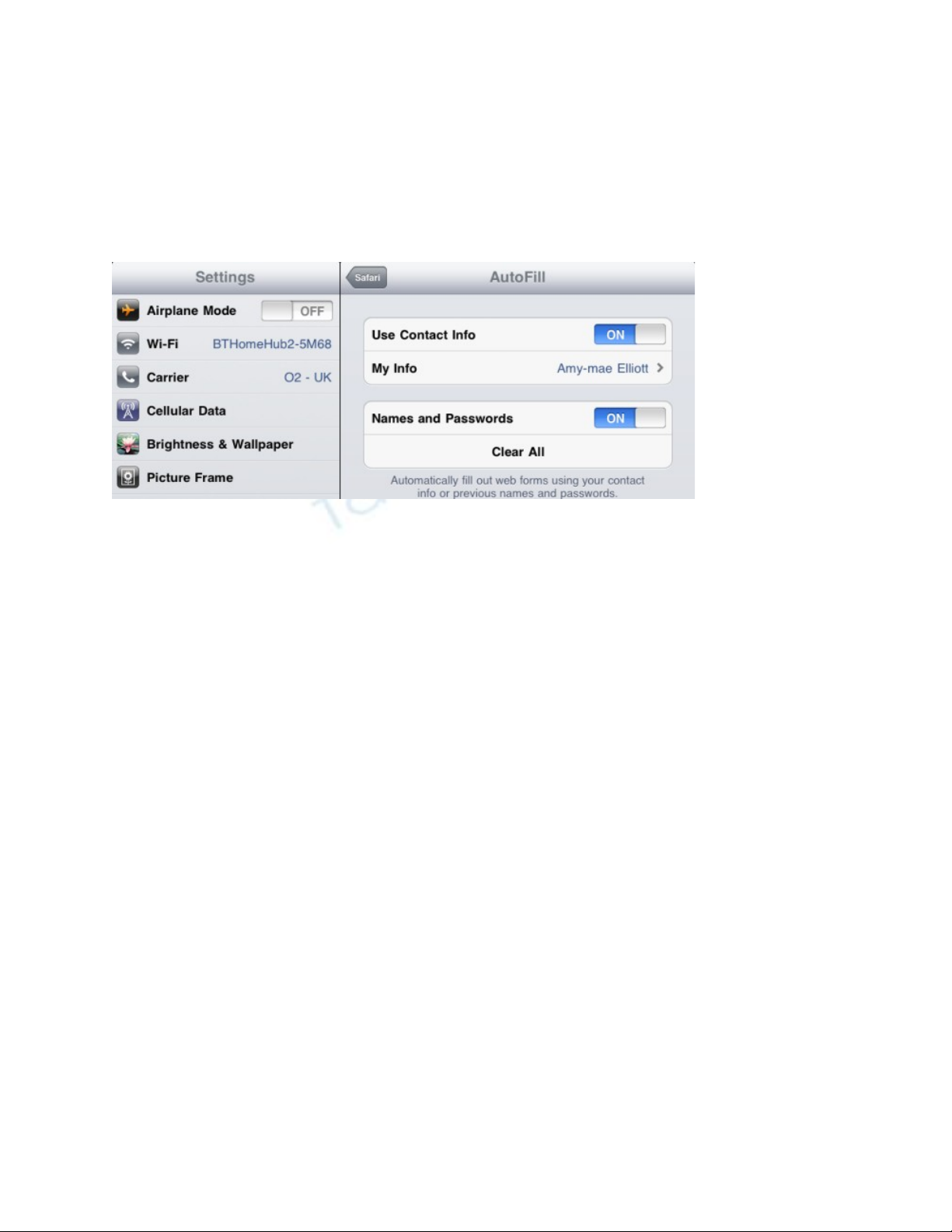 Safari t đ ng đi n vào các form b ng các thông tin liên l c do b n ch đ nh, ho cự ộ ề ằ ạ ạ ỉ ị ặ