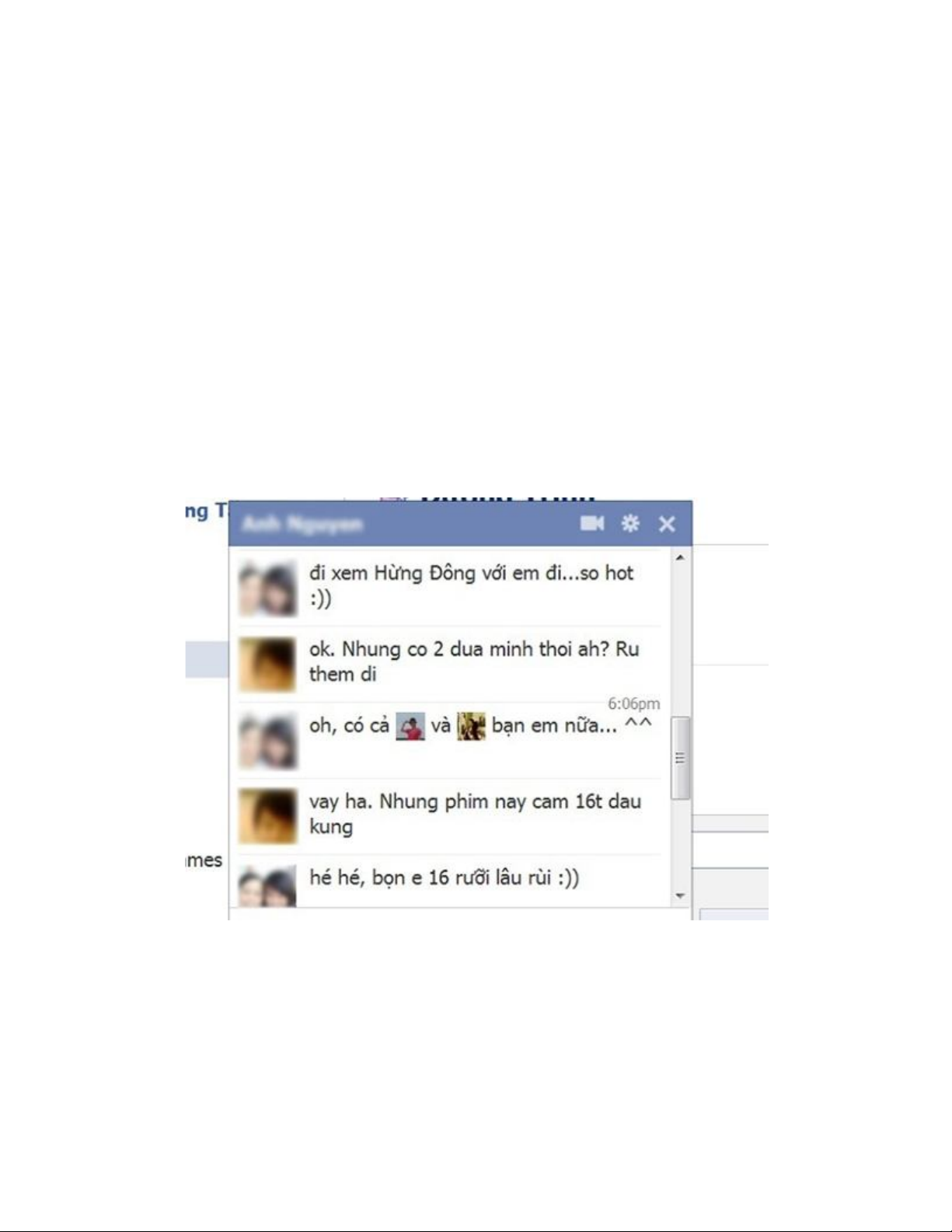 ảnh đại diện trên Facebook) của bạn bè trên cửa sổ chat.