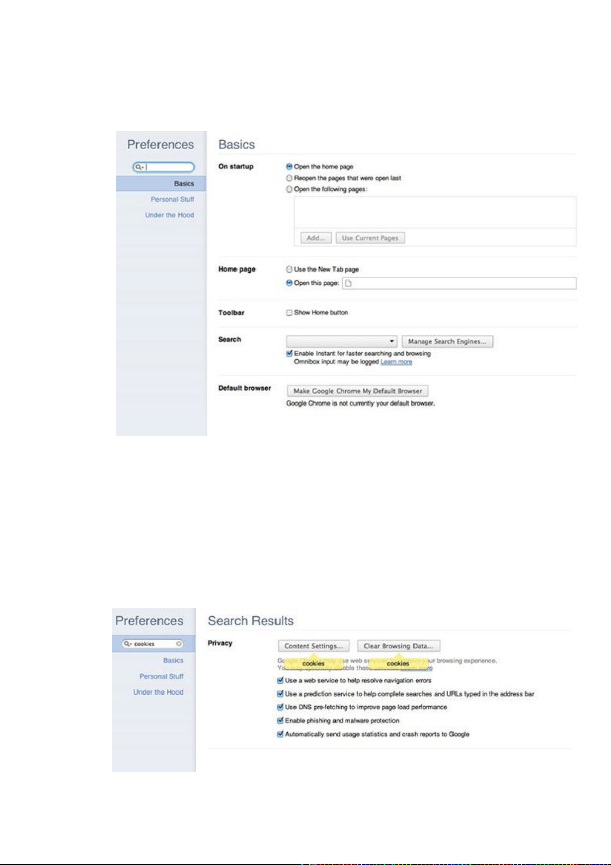 của trình duyệt. Chỉcần gõ "cookies" vào hộp tìm kiếm và tất cảcác thiết lập tương