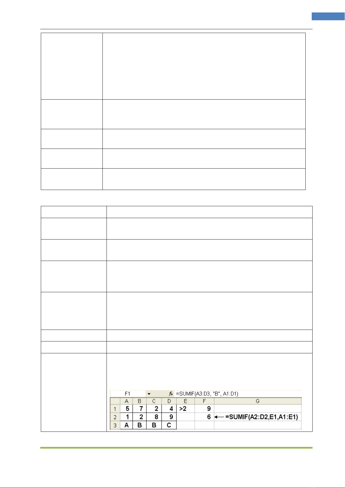 SUMIF(vùng1, điều-kiện, vùng2): trả về tổng các ô trong vùng2 tương