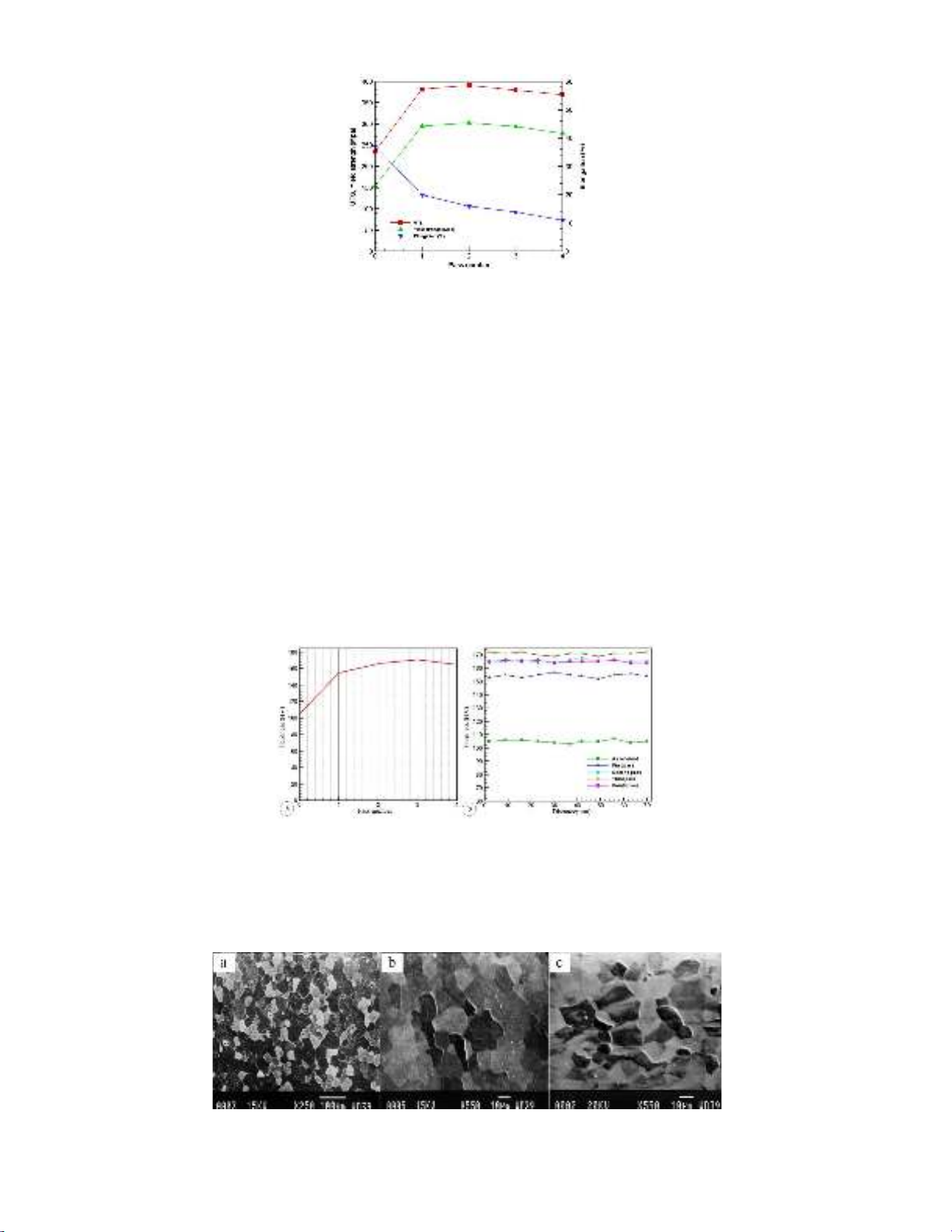 after the second pass. As seen in Fig 4, elongation trend at fracture of the samples for all the passes was decreased. The