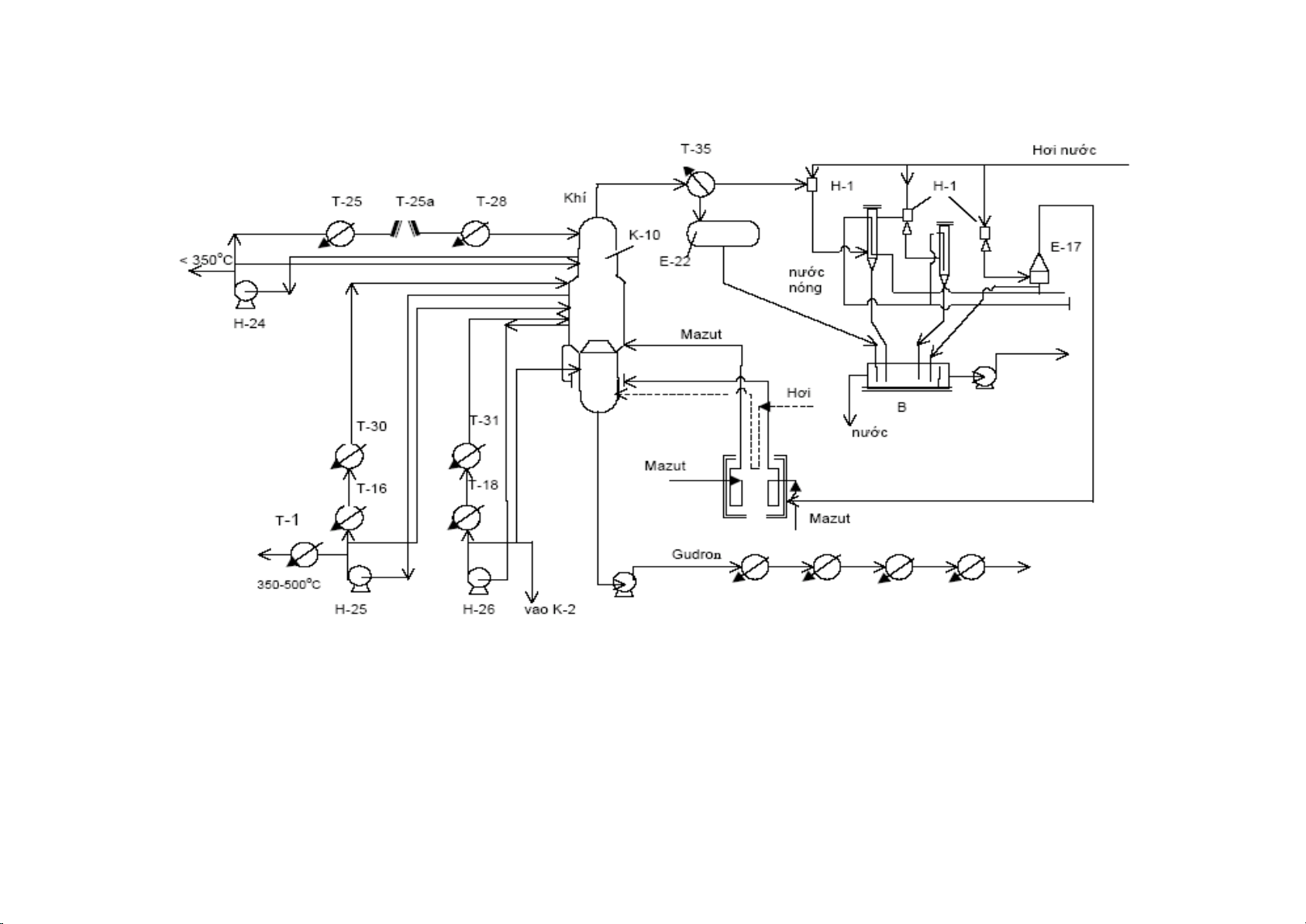 K-10- Tháp chân không; T-35- thiết bị ngƣng tụ; T-1, T-3, T-4, T-16, T-18, T-25, T-34- thiết bị trao đổi nhiệt; T-25a- thiết bị