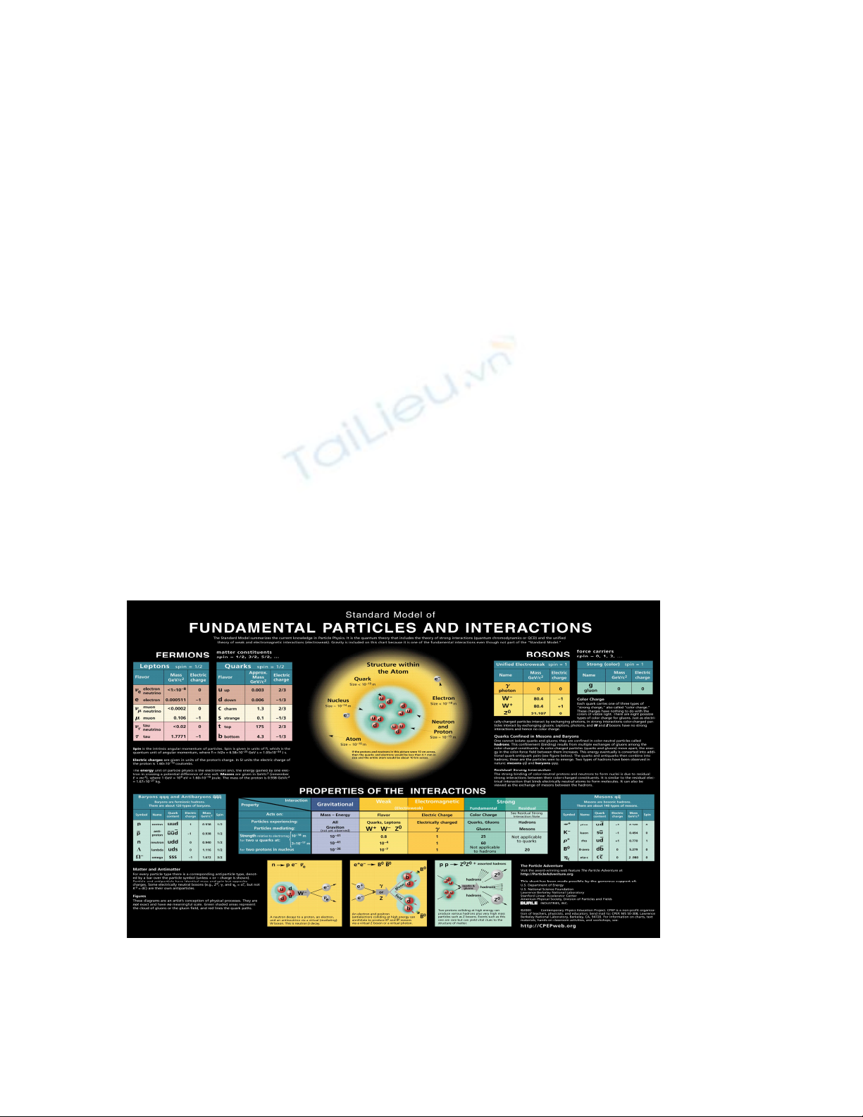 và năng lượng: leptons, quarks và các hạt truyền tương tác ( fields particles). Ba