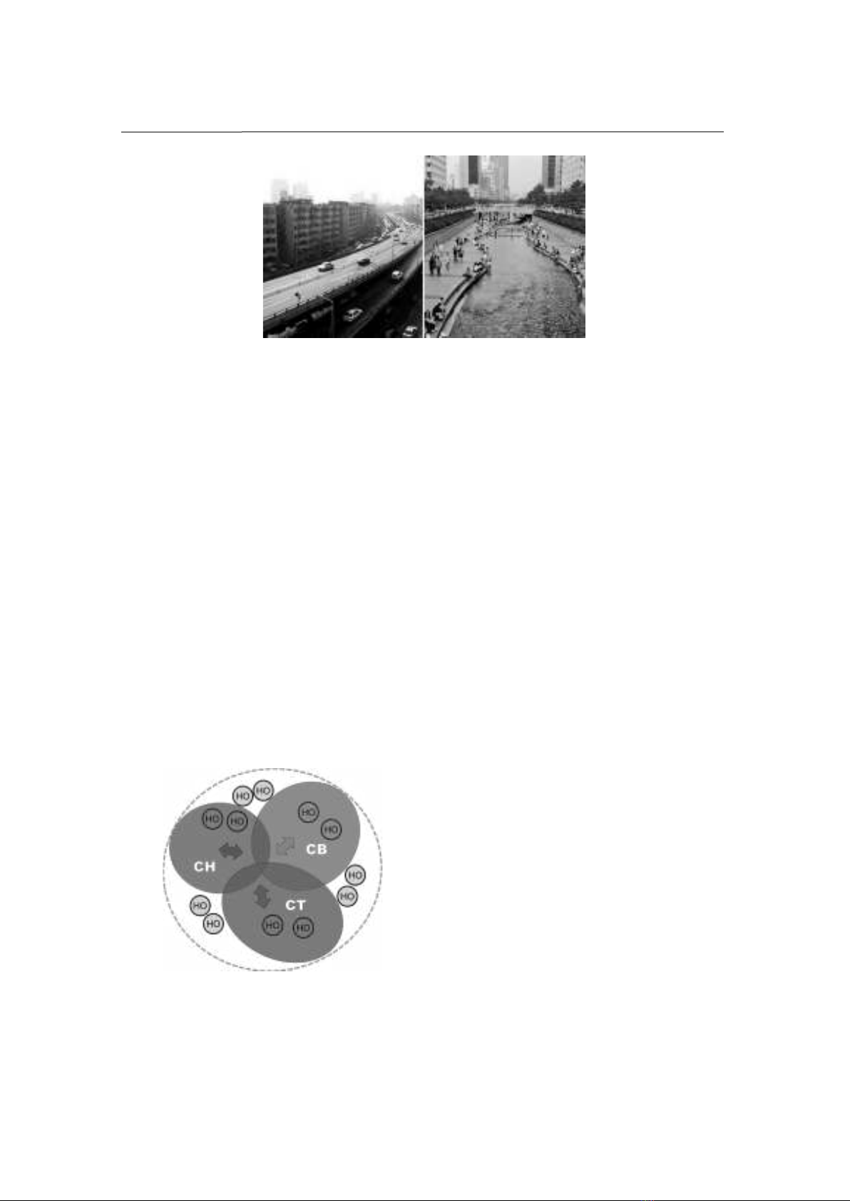Hình 3: Đường cao tốc và suối Cheonggyechen sau khi khôi phục. Ảnh: Benji Becker, 2014.