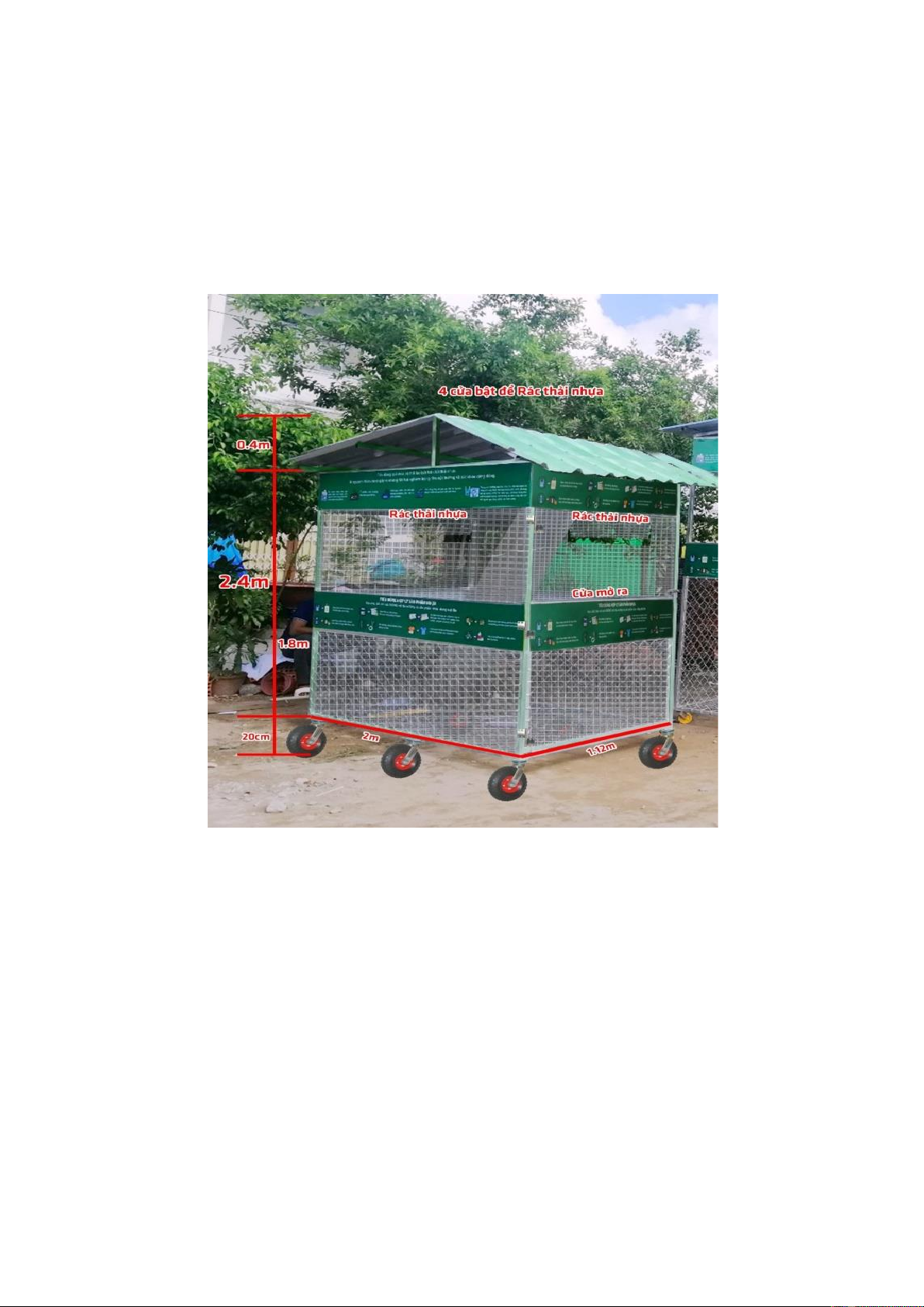 Lắp đặt các trm chứa rác thải nhựa, với quy cách: Kích thước (Dài 2m x rộng