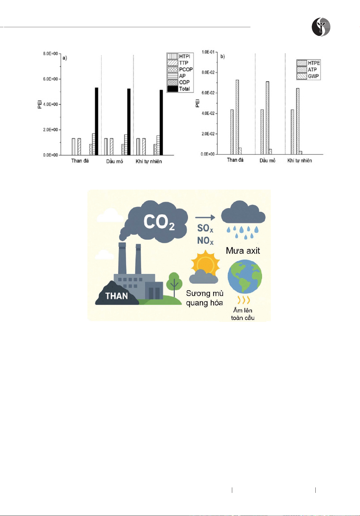 Hình 6. Các chỉ số (a,b) thể hiện tác động môi trường tiềm ẩn của 3 dạng nguồn năng lượng