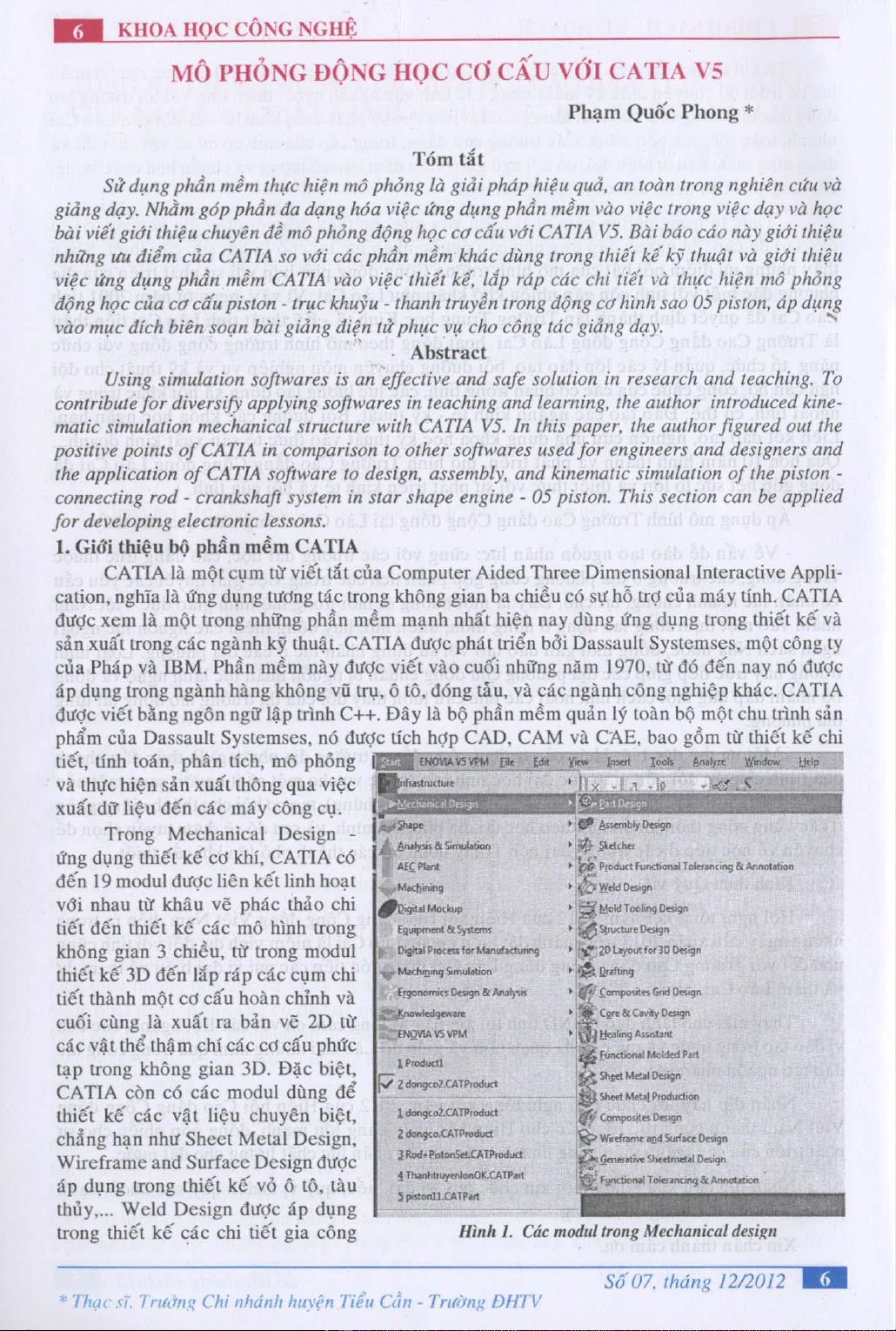 Sử dụng phần mềm thực hiện mô phỏng là giải pháp hiệu quả, an toàn tỏng nghiên cứu và giảng dạy. Nhằm góp phần đa dạng hóa việc ứng dụng phầm mềm vào việc giảng dạy và học, bài viết giới thiệu chuyên đề mô phỏng động học cơ cấu với CATIA V5.