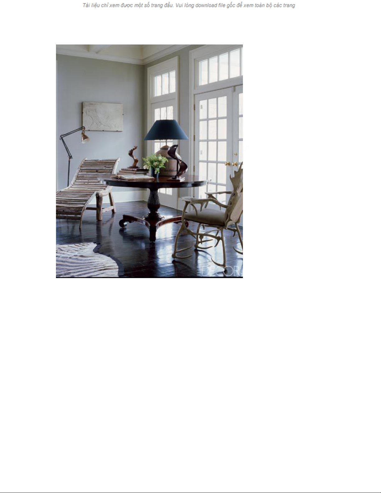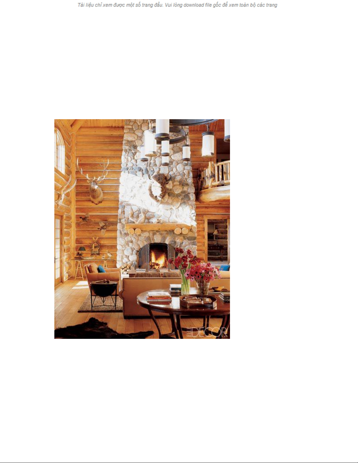 căn phòng khách. Bên cạnh đó, đầu hươu nai cũng tạo cảm giác về vùng núi cho
