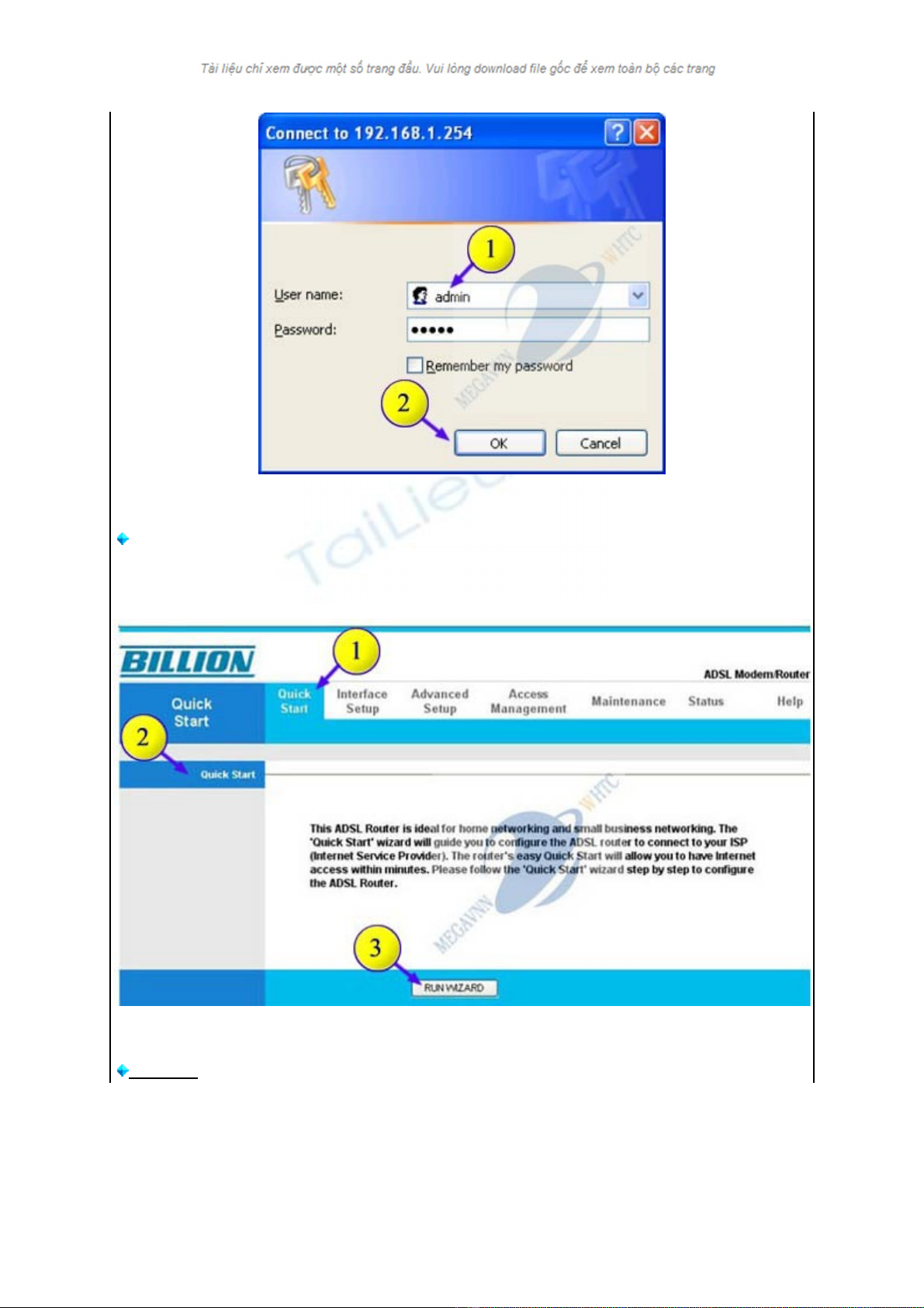 Khi đó sẽ xuất hiện hộp thoại yêu cầu nhập Username và Password đăng nhập modem.