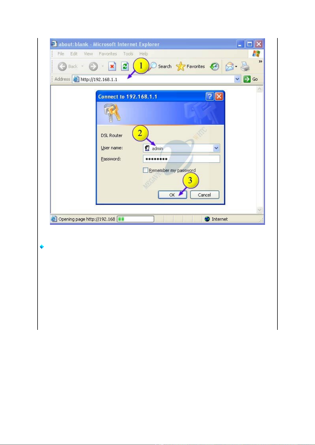Mở trình duyệt Internet Explorer và gõ vào địa chỉ IP của modem: http://192.168.1.1/ rồi nhấn Enter.