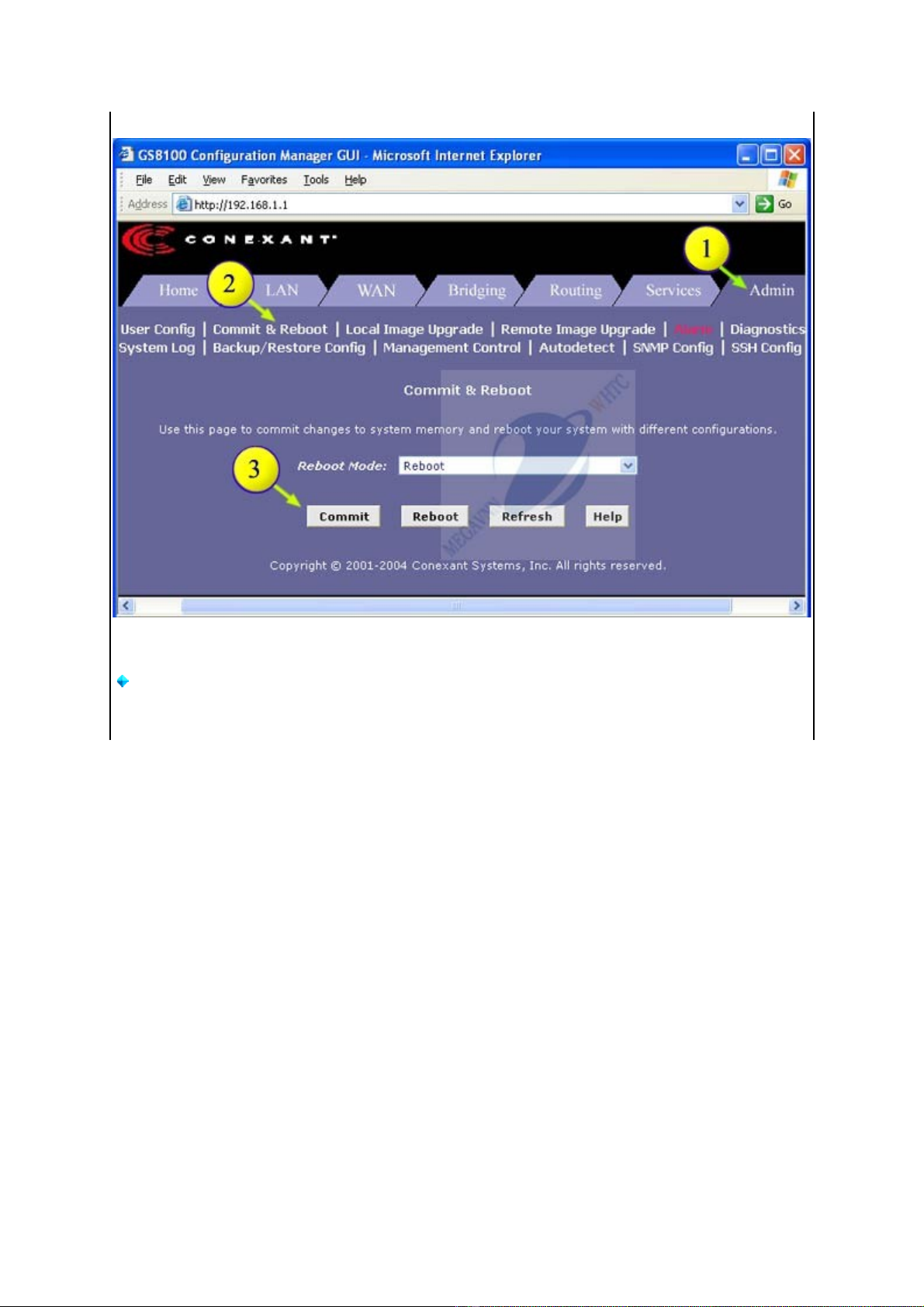 Chọn Admin bên góc phải màn hình sau đó chọn Commit & Reboot (xem hình 5)