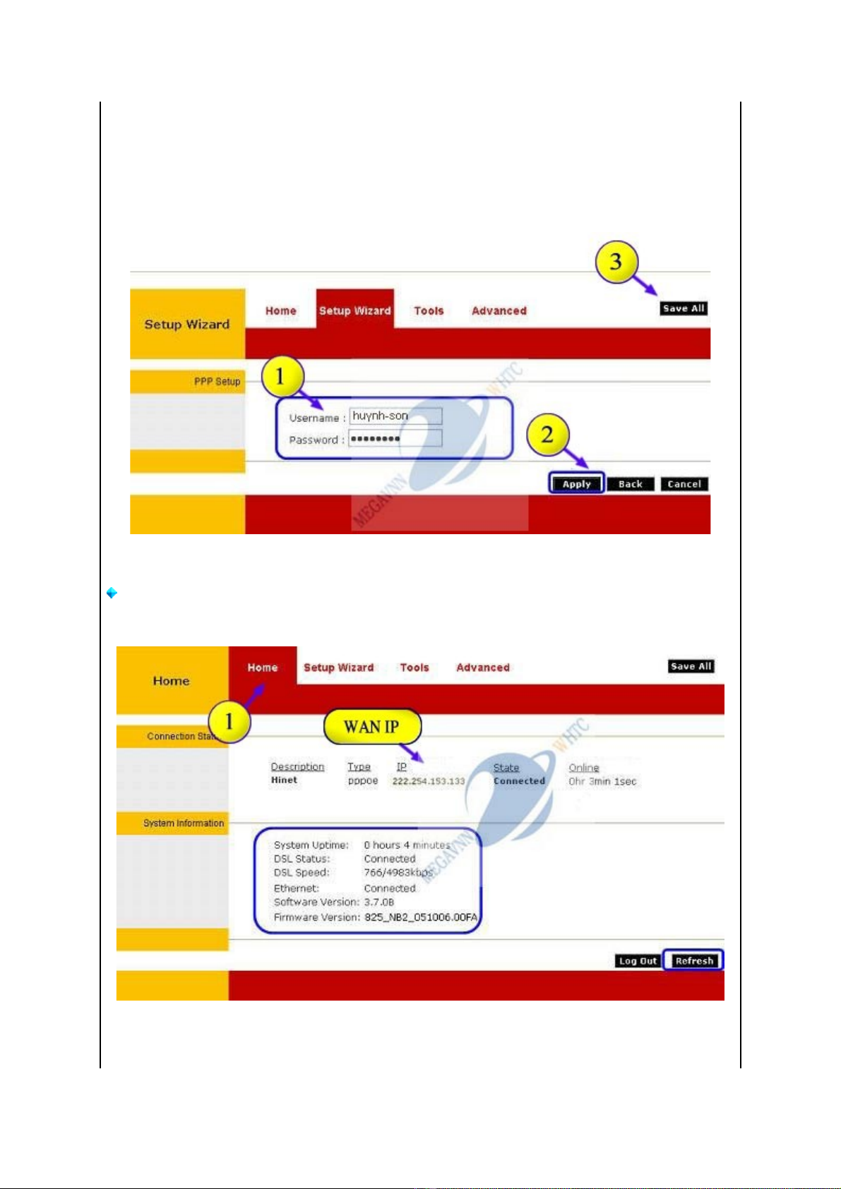 Bước 5. Cài đặt kết nối Internet cho modem và lưu cấu hình modem