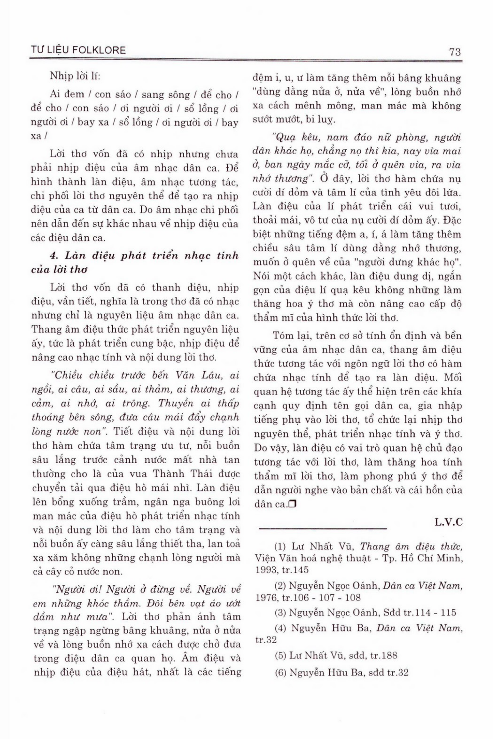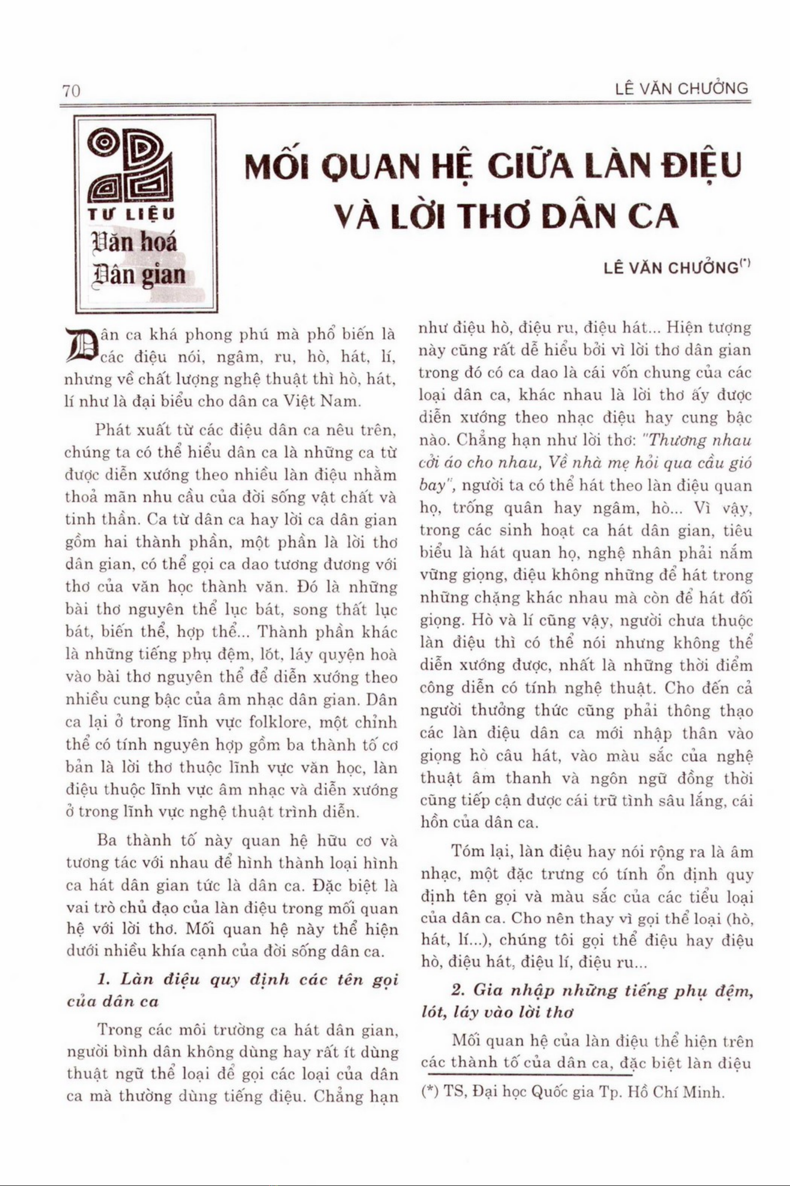 More than 100 words in fluent Vietnamese... Tài liệu này phân tích mối quan hệ giữa làn điệu và lời thơ trong dân ca, đã xác định rằng hai yếu tố này không chỉ là phần riêng biệt của một tác phẩm, mà còn là hai nửa của một tổng thể nghệ thuật hoàn chỉnh. Làn điệu và lời thơ kết nối với nhau để tạo ra hiệu quả nghệ thuật, làm nổi bật ý nghĩa và giá trị của dân ca.