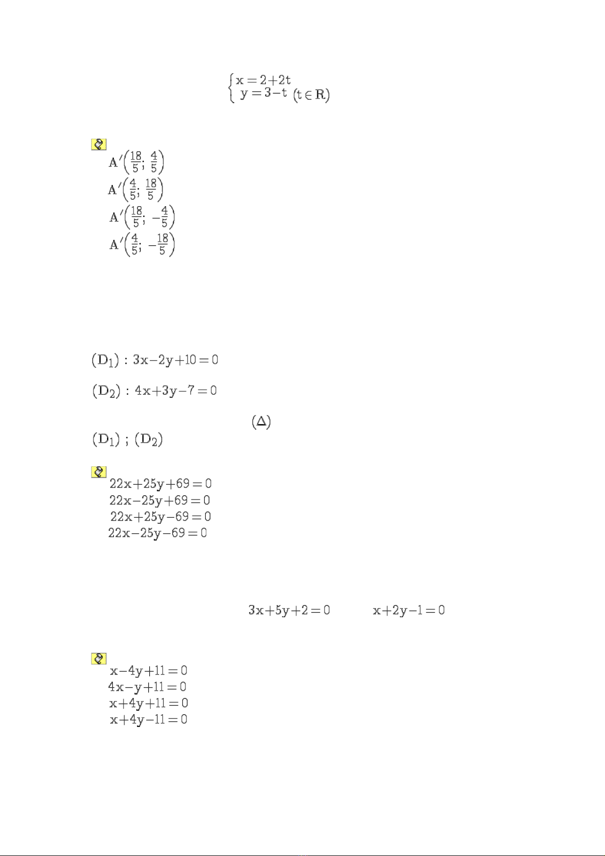 Cho đ ng th ng (d) : ườ ẳ và đi m A(6 ; 5). Đi m A’ đ i x ng c a Aể ể ố ứ ủ