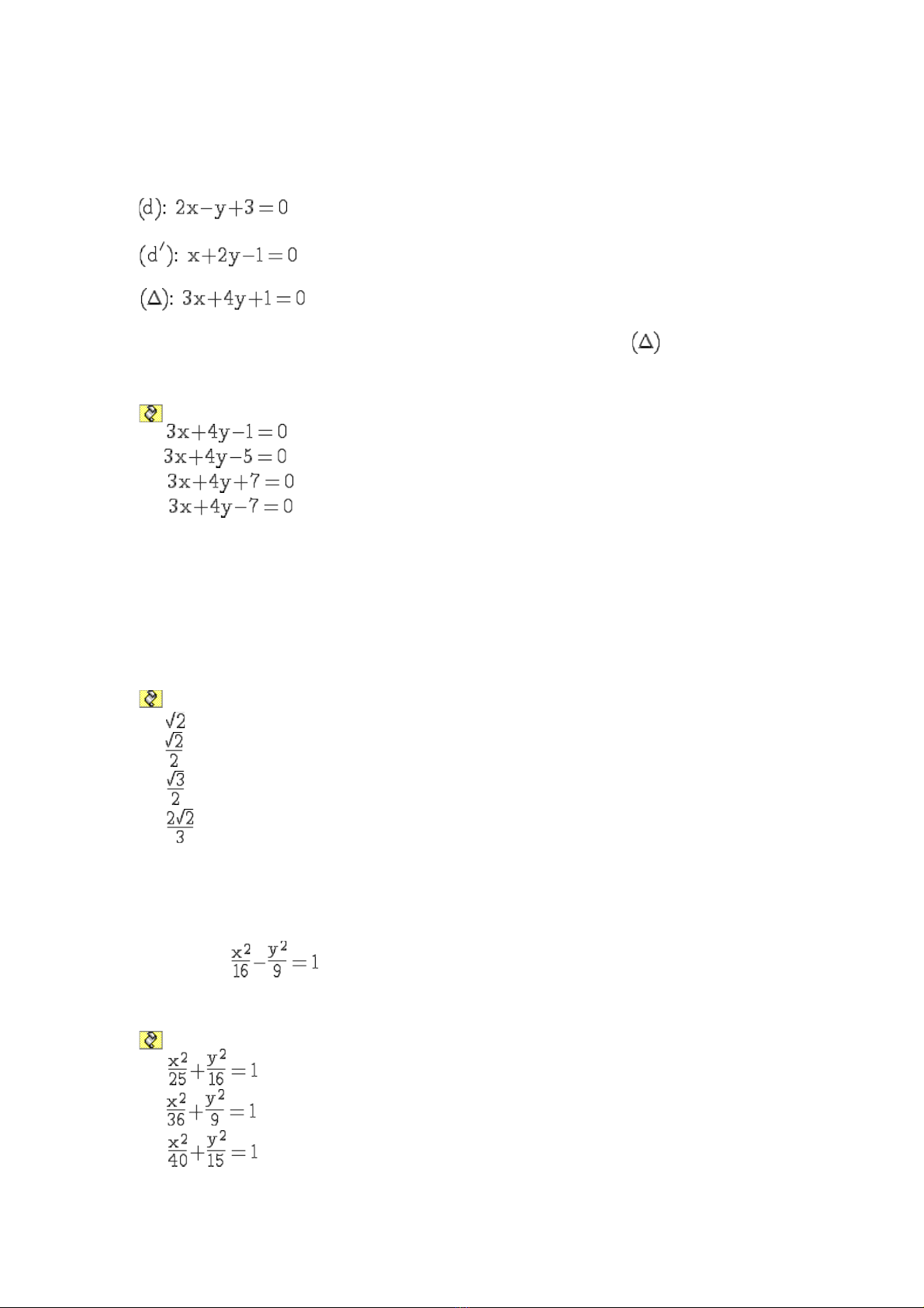 Cho hyperbol (H) : . Ph ng trình hai đ ng chu n c a (H) là : ươ ườ ẩ ủ