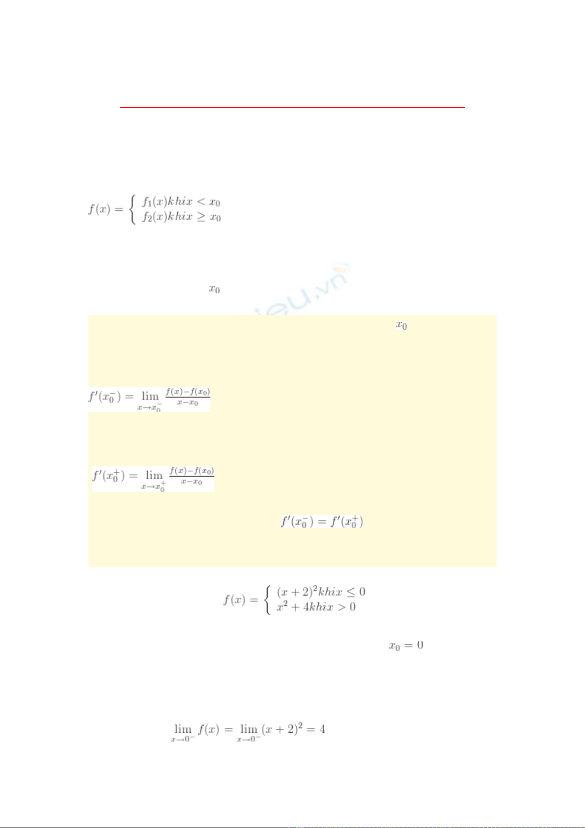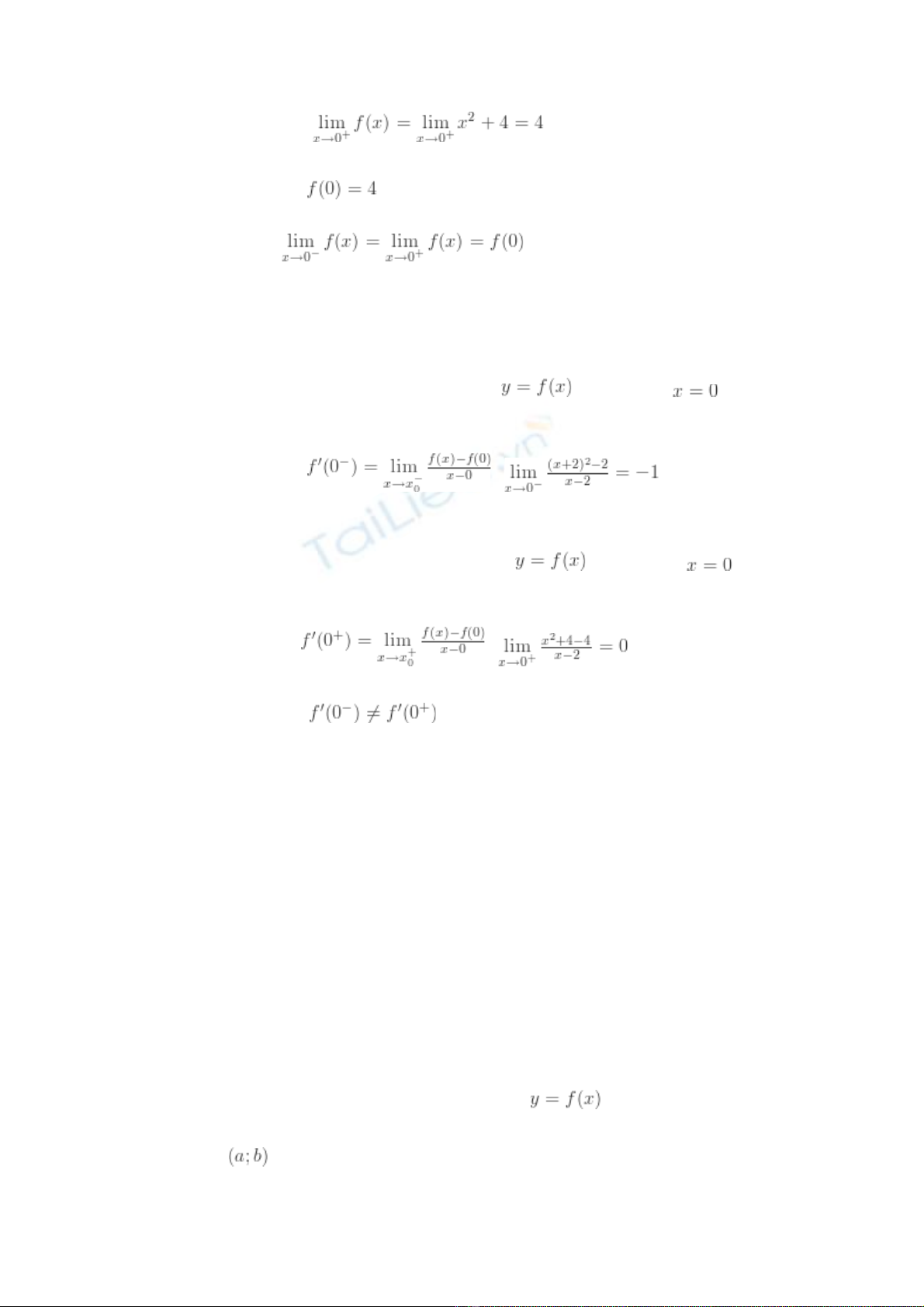 •K t lu n:ế ậ Hàm s có đ o hàm bên trái, bên ph i , nh ngố ạ ả ư