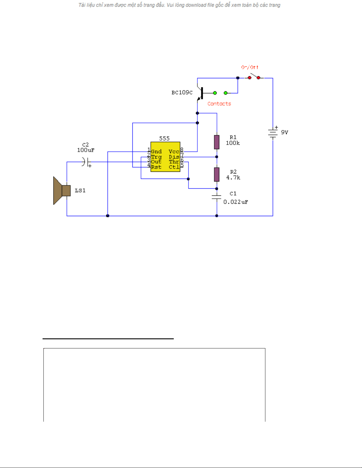 nguồn cấp nguồn cho 555. Dẫn đến 555 tạo dao động phát âm thanh ra loa. Khi mức