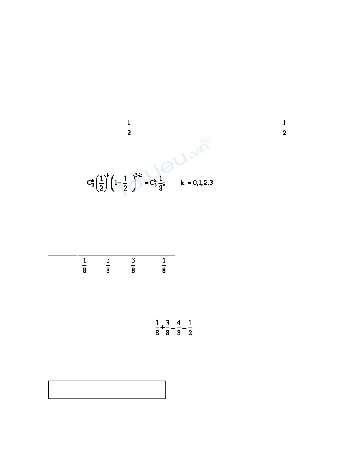 xuất hiện mặt sấp là p = . Vậy X có phân phối nhị thức tham số n = 3, p = ,