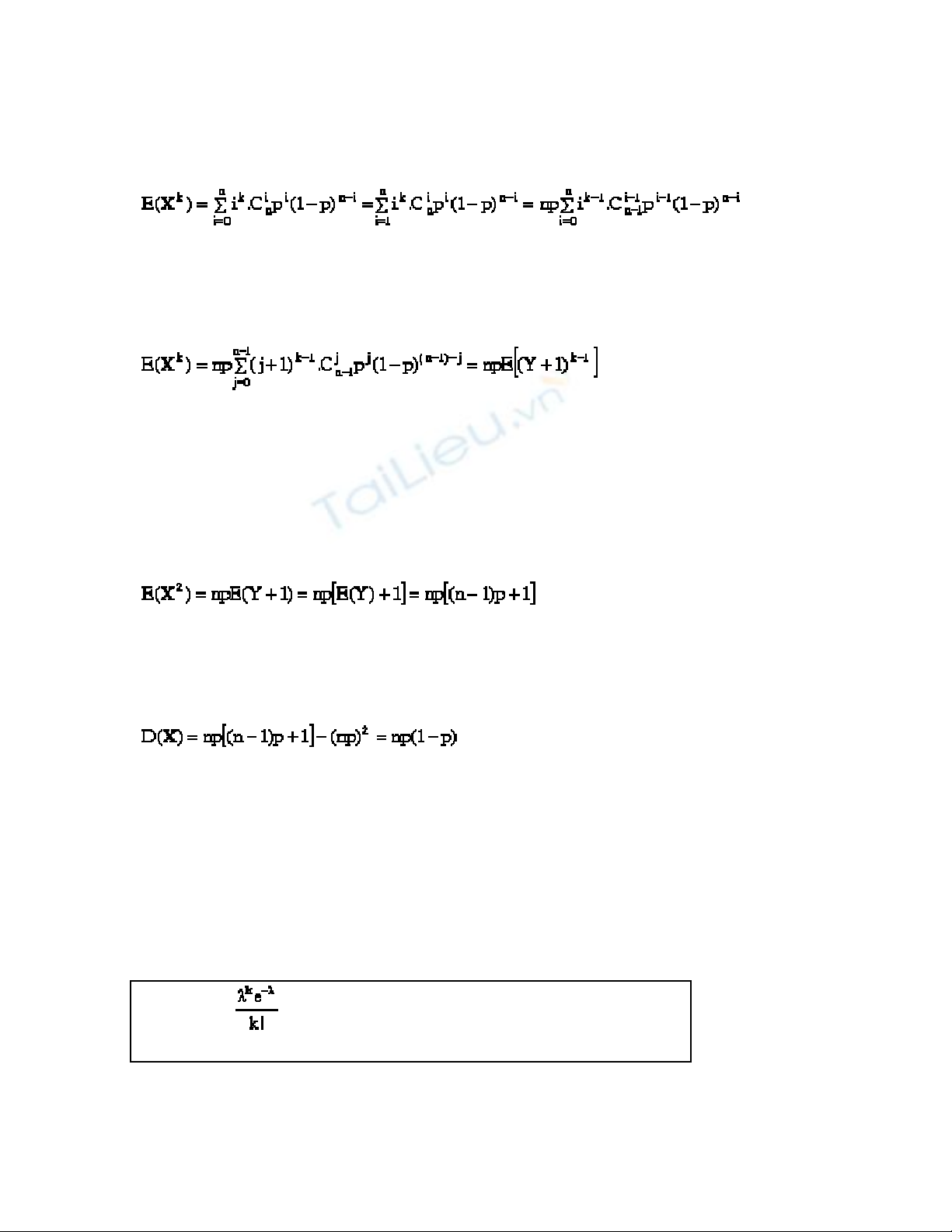 Vậy khi cho k = 1 ta nhận được EX = np. Cho k = 2 ta có