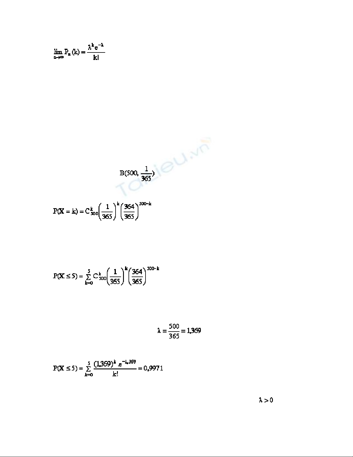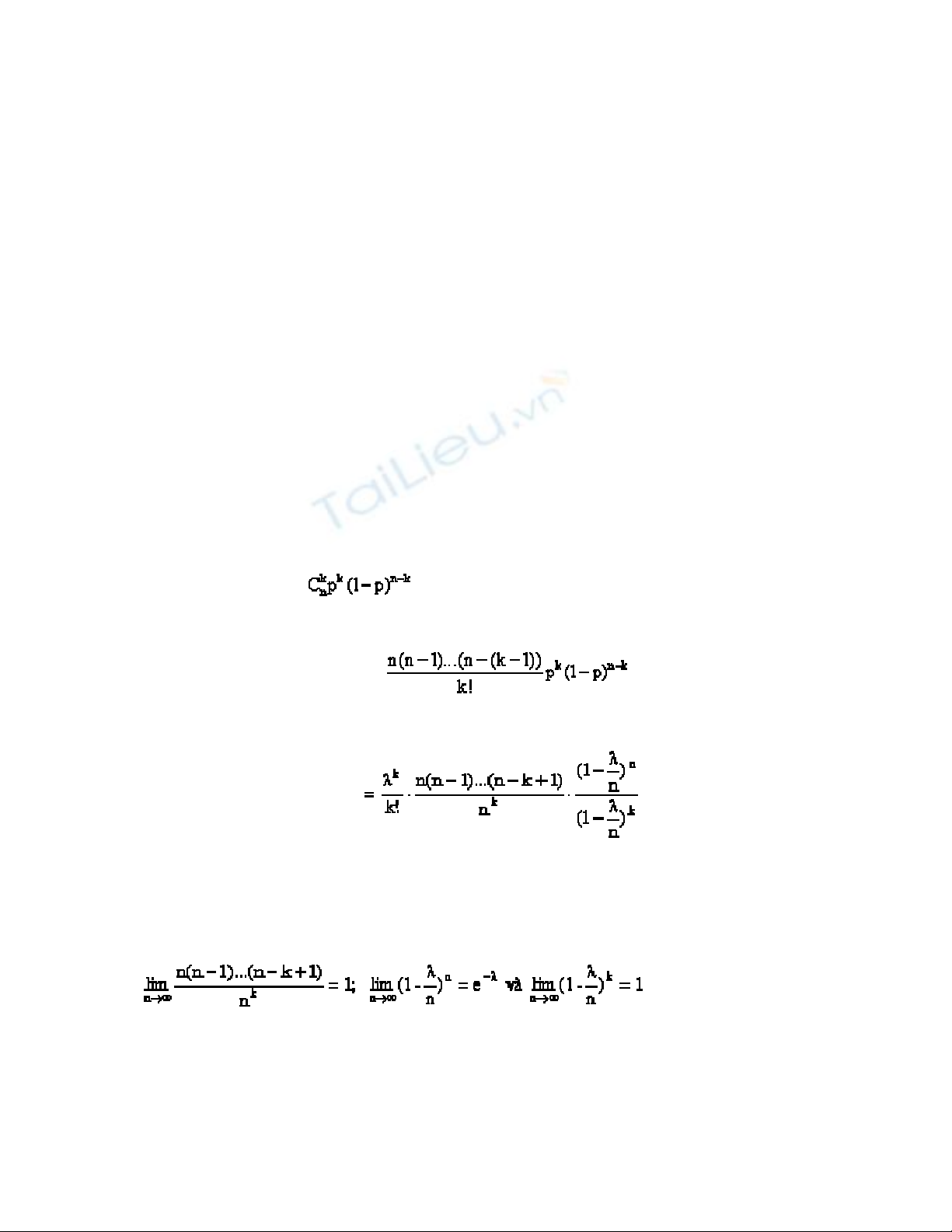 hay X có xấp xỉ phân phối Poisson tham số l = np.