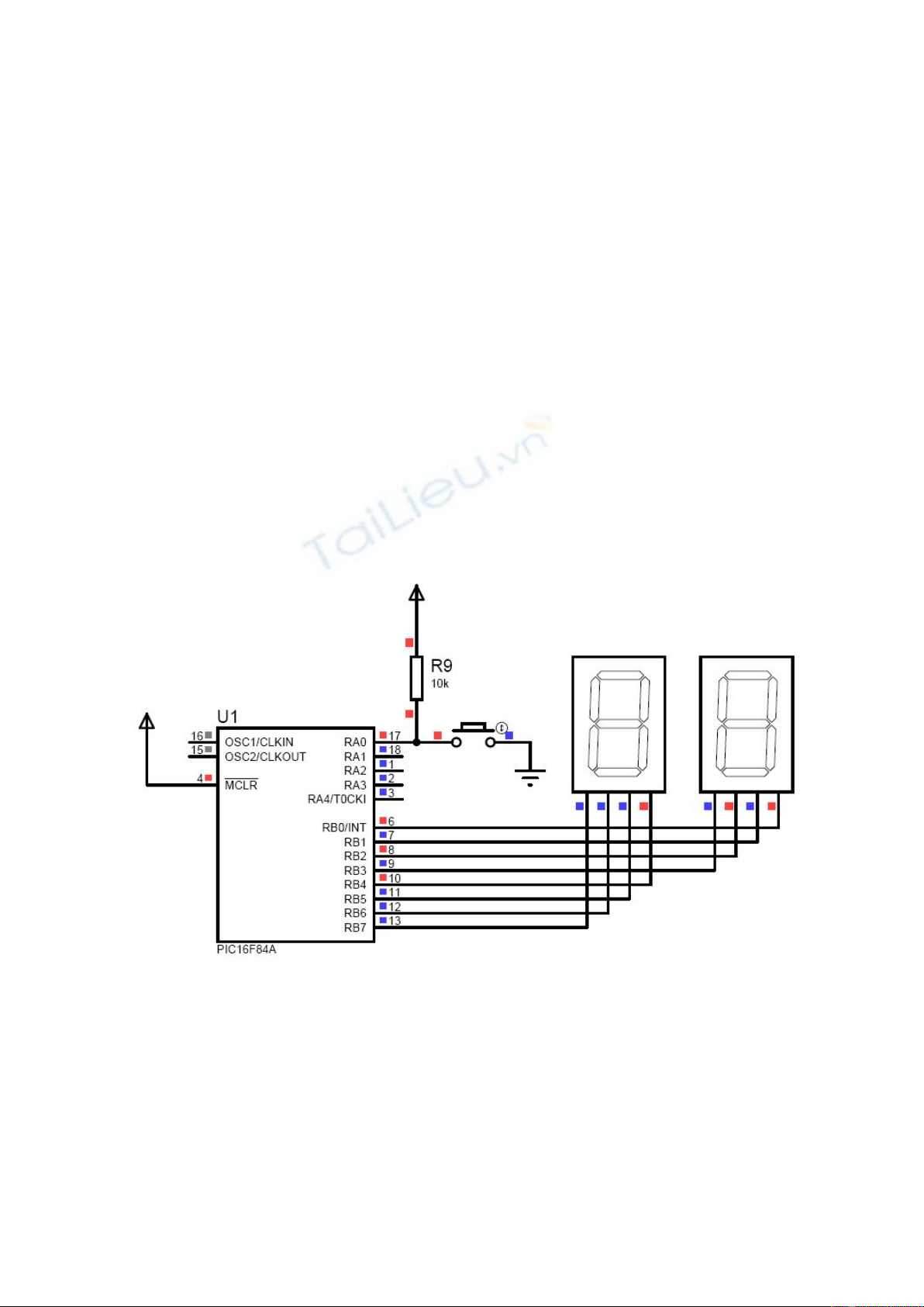 · Sơ đồ mạch: (Giả sử phím nhấn không bị nẩy [rung] và LED 7 đoạn có sẵn mạch giải mã)