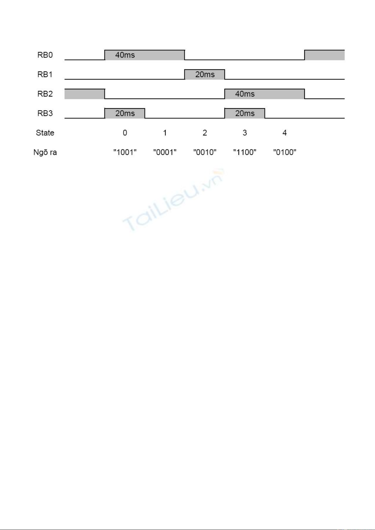 20ms và trạng thái bắt đầu là trạng thái 0. Ta có thể dùng bảng để chứa trị số ra tương ứng với mỗi trạng