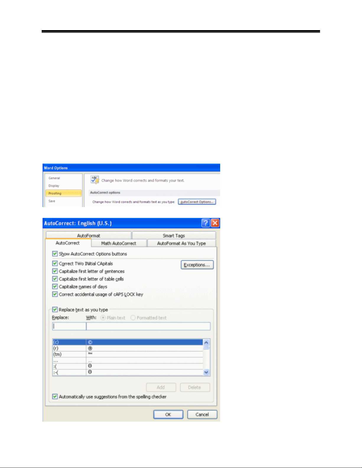 Auto Correct Options.