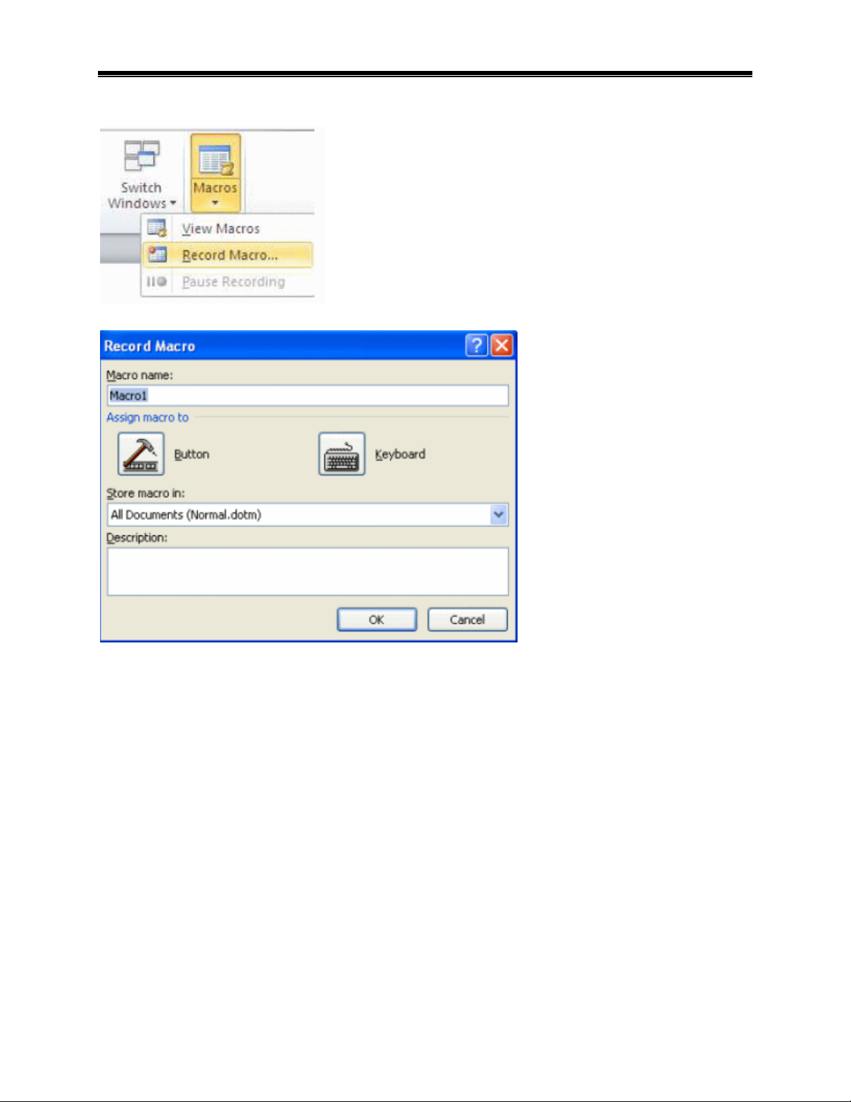 thực thi thường xuyên trong một tài liệu Word. Chúng ghi lại chuỗi các lựa chọn mà bạn chọn để