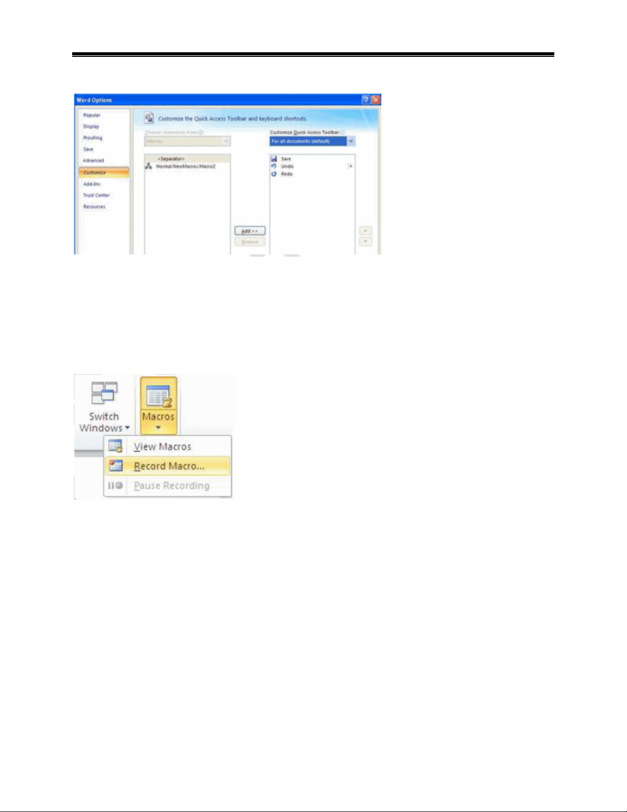 - Dưới Customize Quick Access Toolbar, lựa chọn tài liệu mà bạn muốn Macro có sẵn.