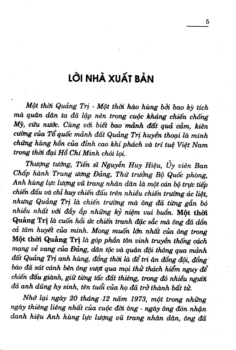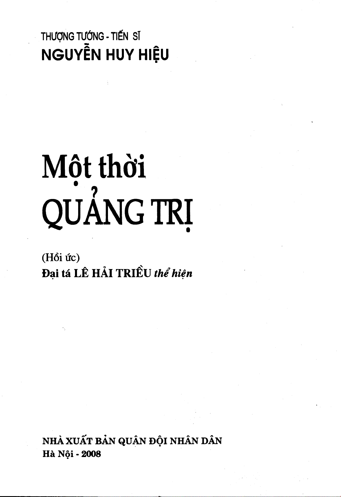 Hồi ức của thượng tướng Nguyên Huy Hiệu. Phần lời giới thiệu. Hồi ức do Đại Tá Lê Hải Triều thể hiện