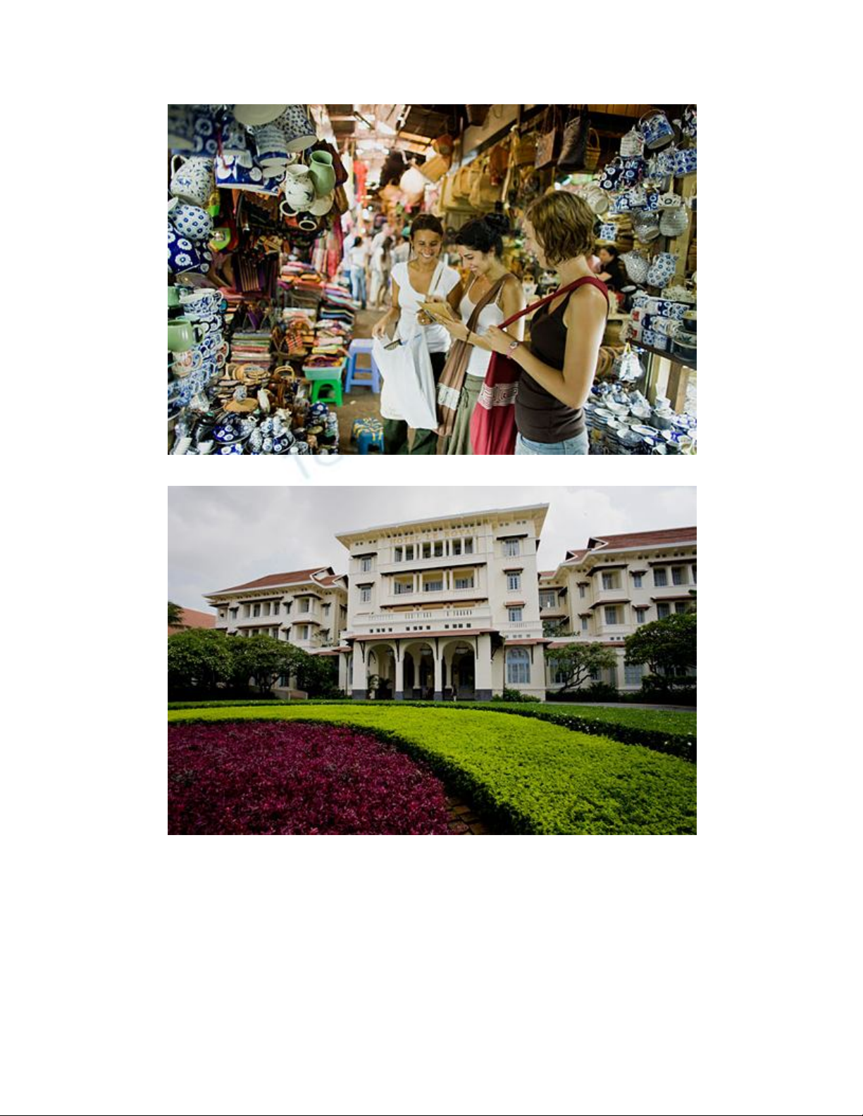 Khách du lịch vui vẻ mua sắm.