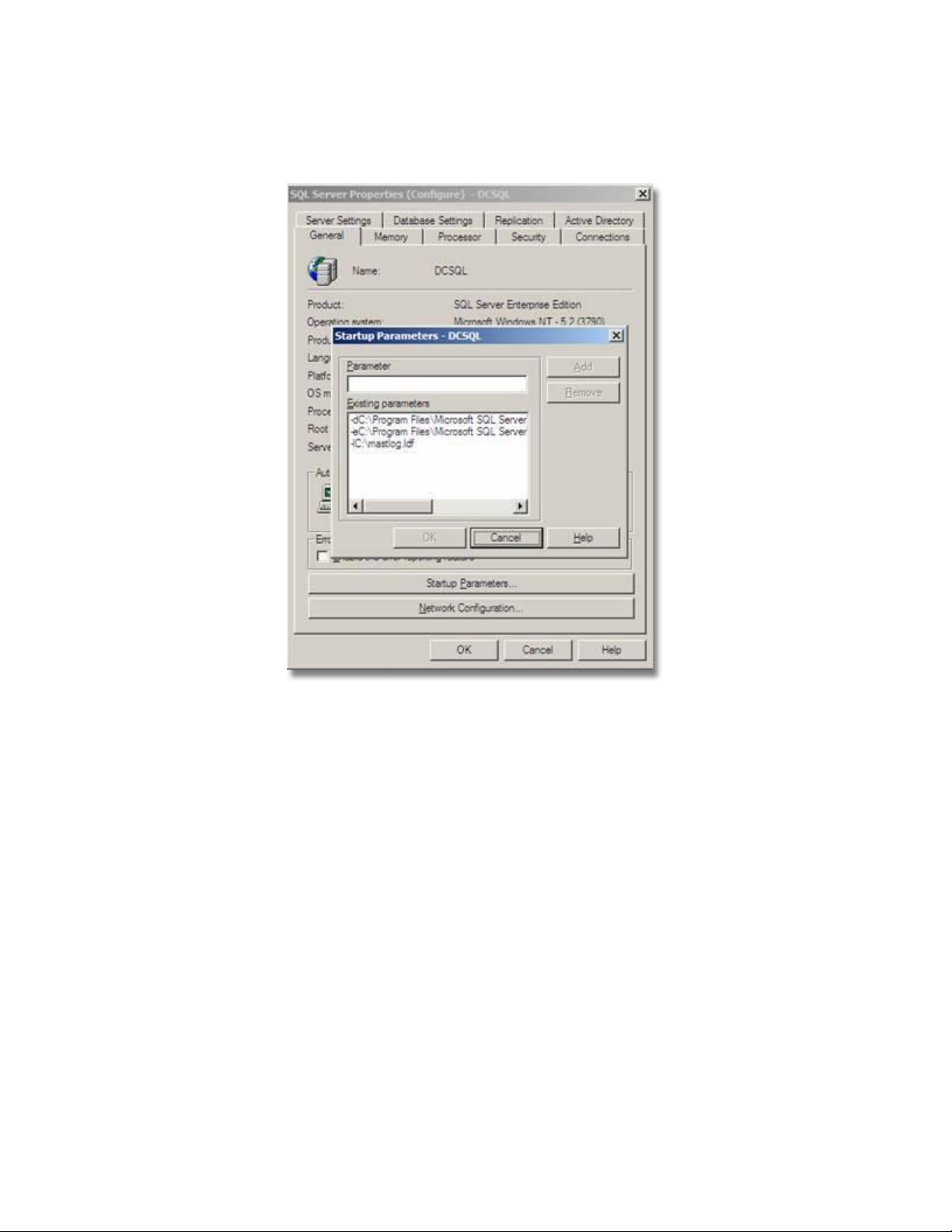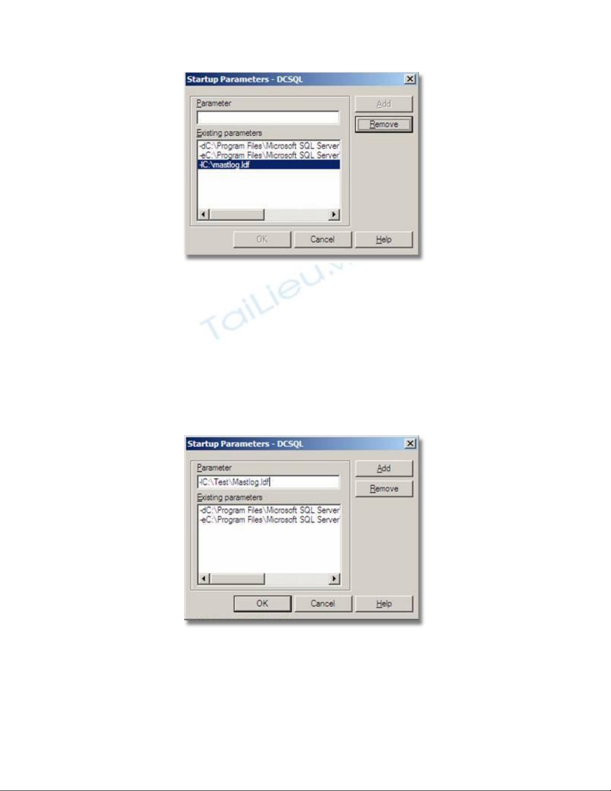 C), -l (c:Testmastlog.ldf) và kích OK hai lần. Sau đó bạn dừng SQL Server và