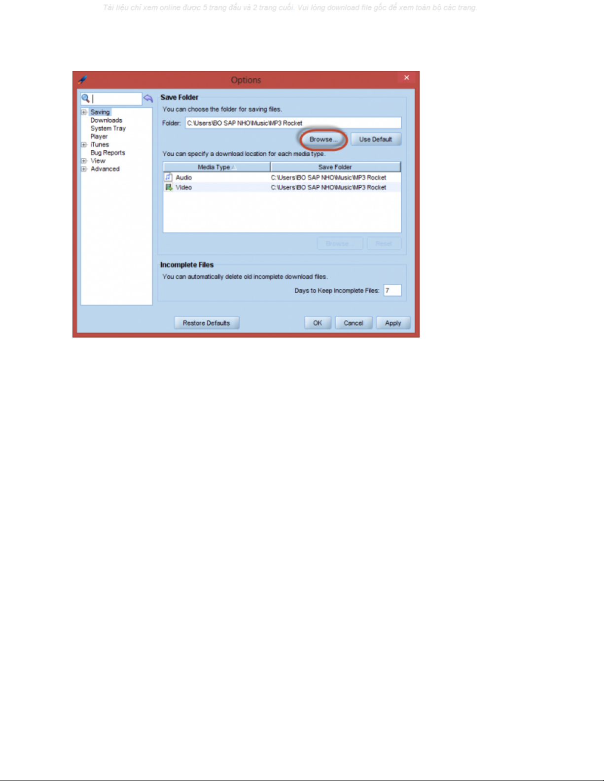 - Tại thẻ Saving, bạn nhấn Browse để chọn thư mục mà phần mềm sẽ tải về các tập