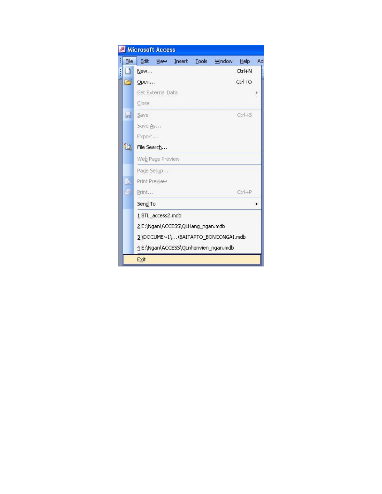 Không cần để ý tới cách thoát khỏi Access vì các tác dụng đều như nhau. Nếu