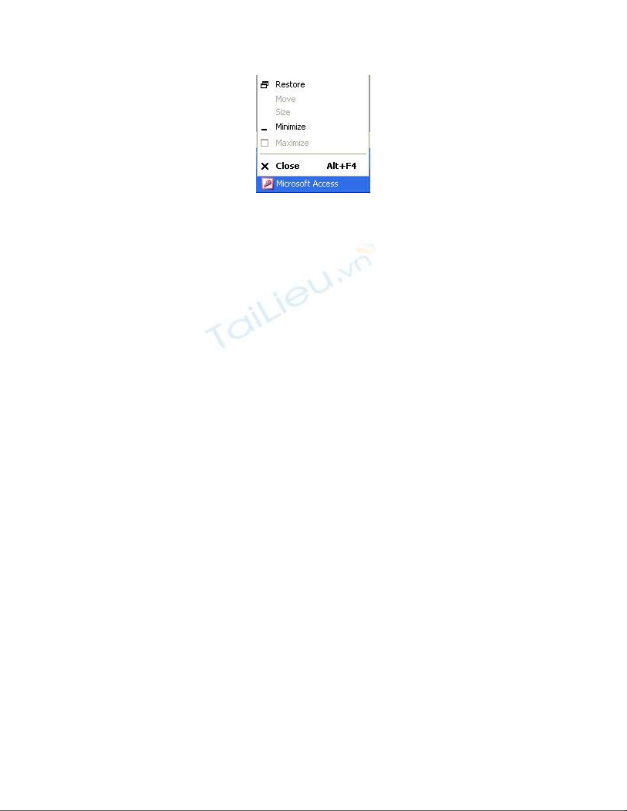 • Kích chuột phải vào cửa sổ Access trên thanh tác vụ phía dưới màn hình và