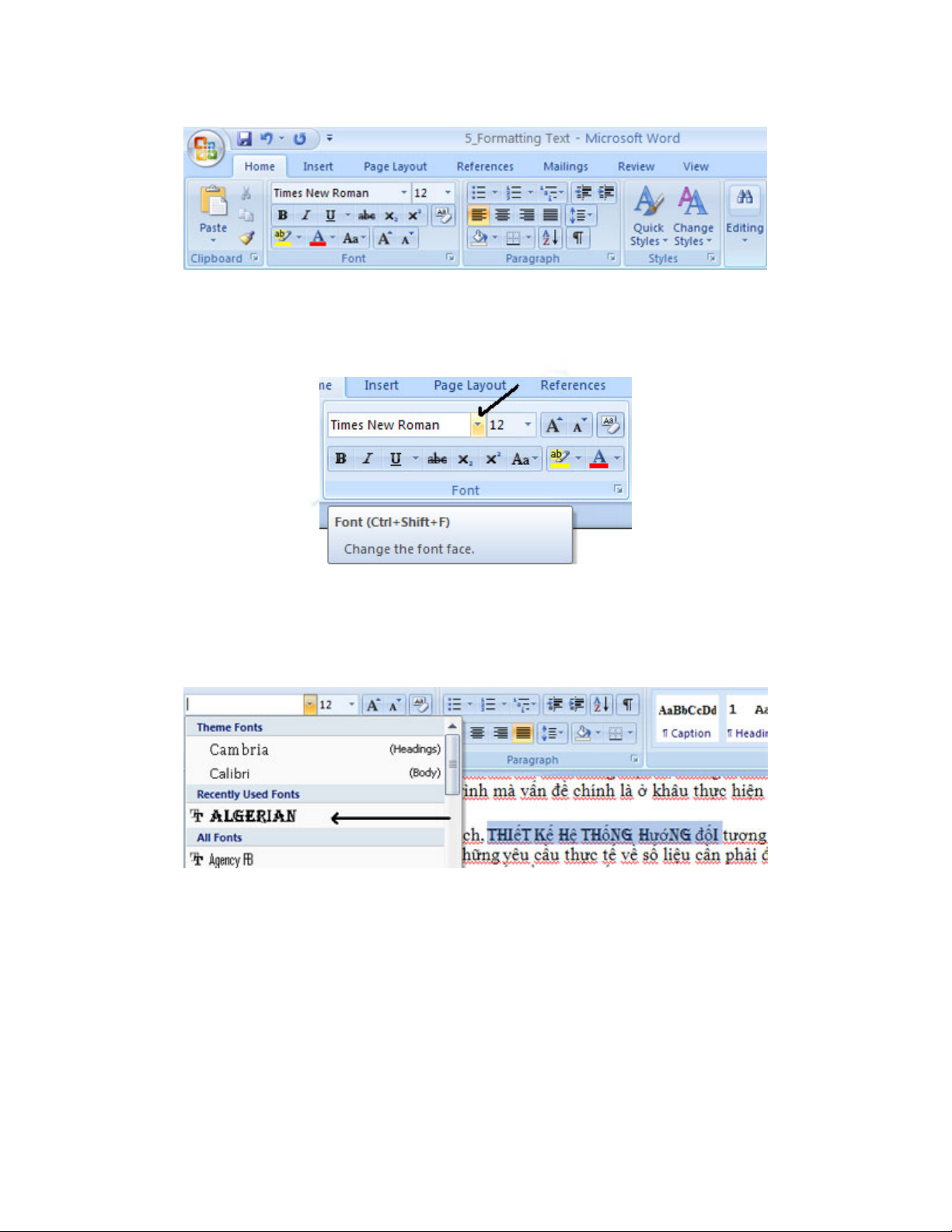• Bôi đen văn bản và kích vào Font Styles được hiển thị trên nhóm Font của