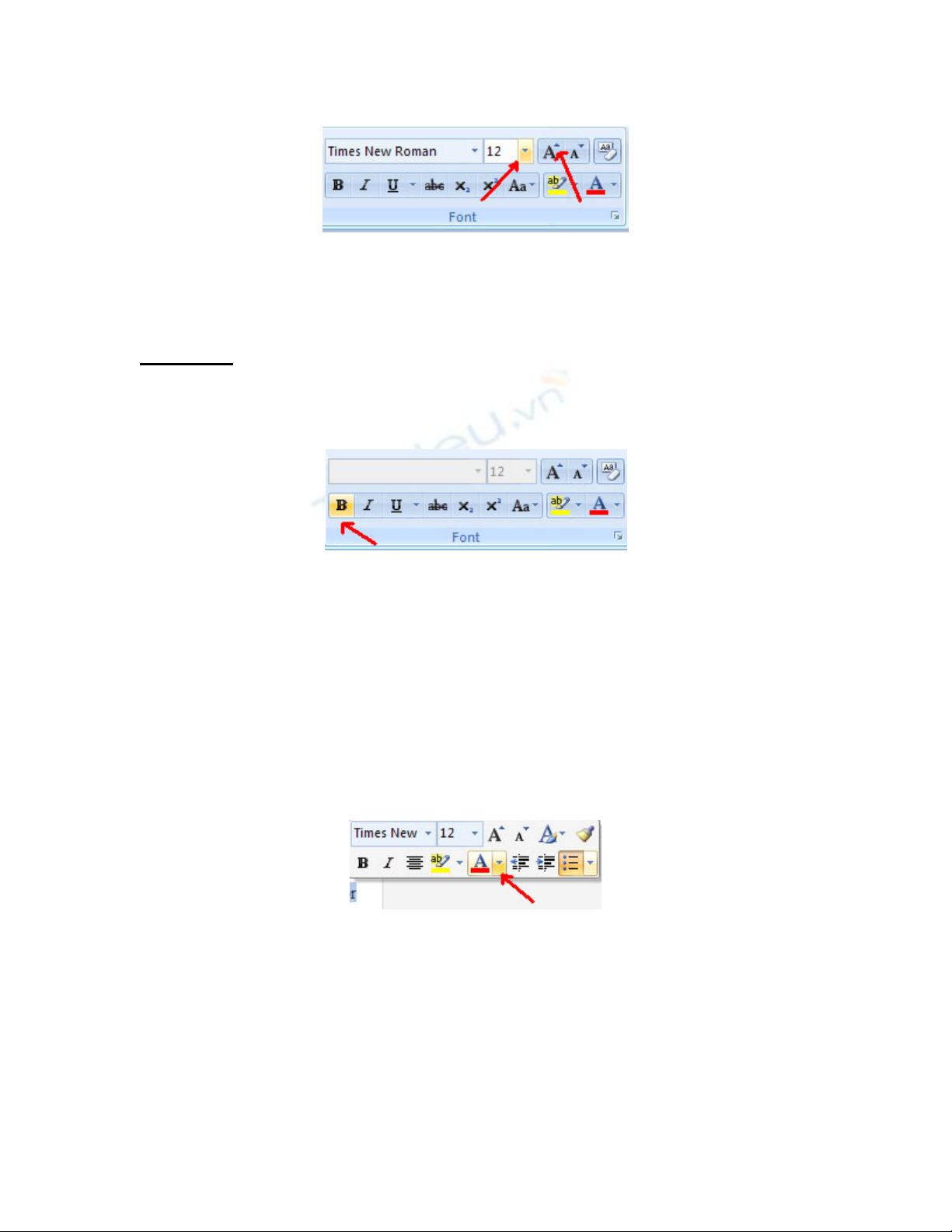 làm nổi bật văn bản. Chúng bao gồm: Bold (đậm), Italic (nghiêng) và