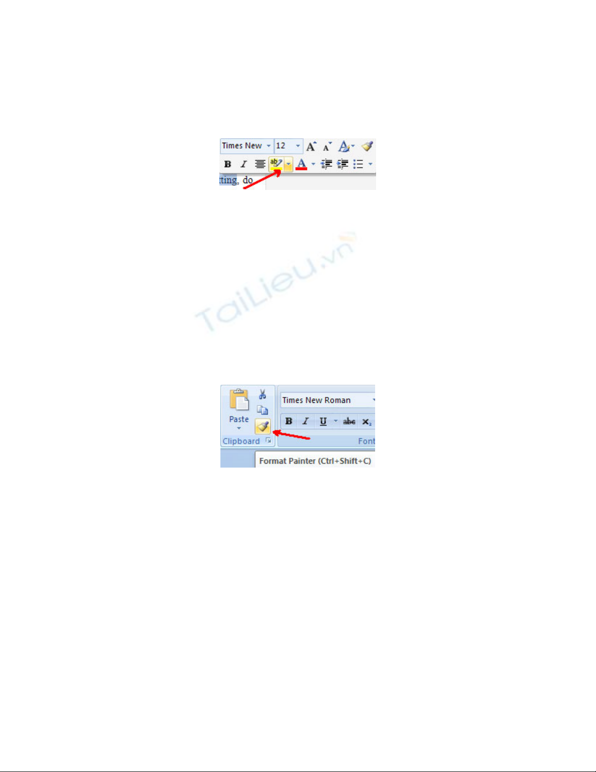 • Sao chép định dạng văn bản bằng cách kích vào nút Format Painter trên