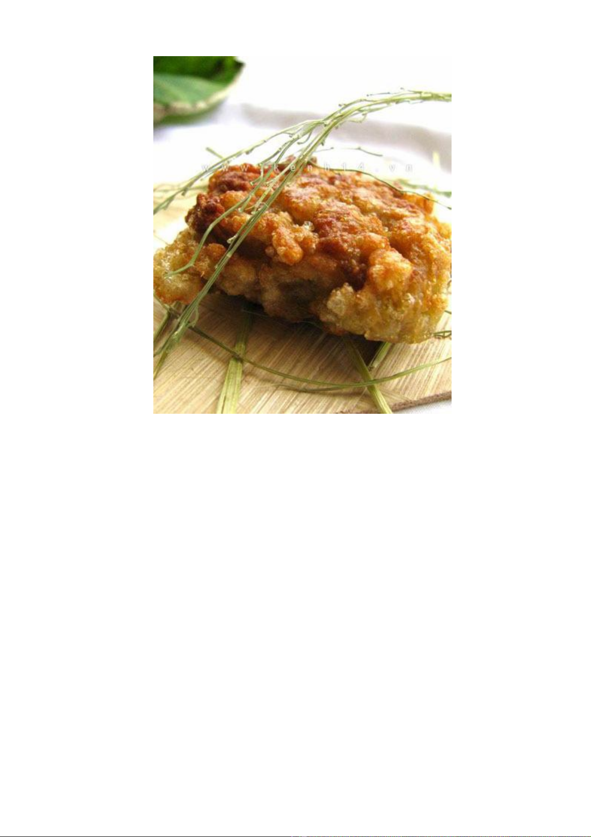 cho miếng chả cốm vào chảo dầu nóng già chiên vàng. Để tăng thêm hương vị của món