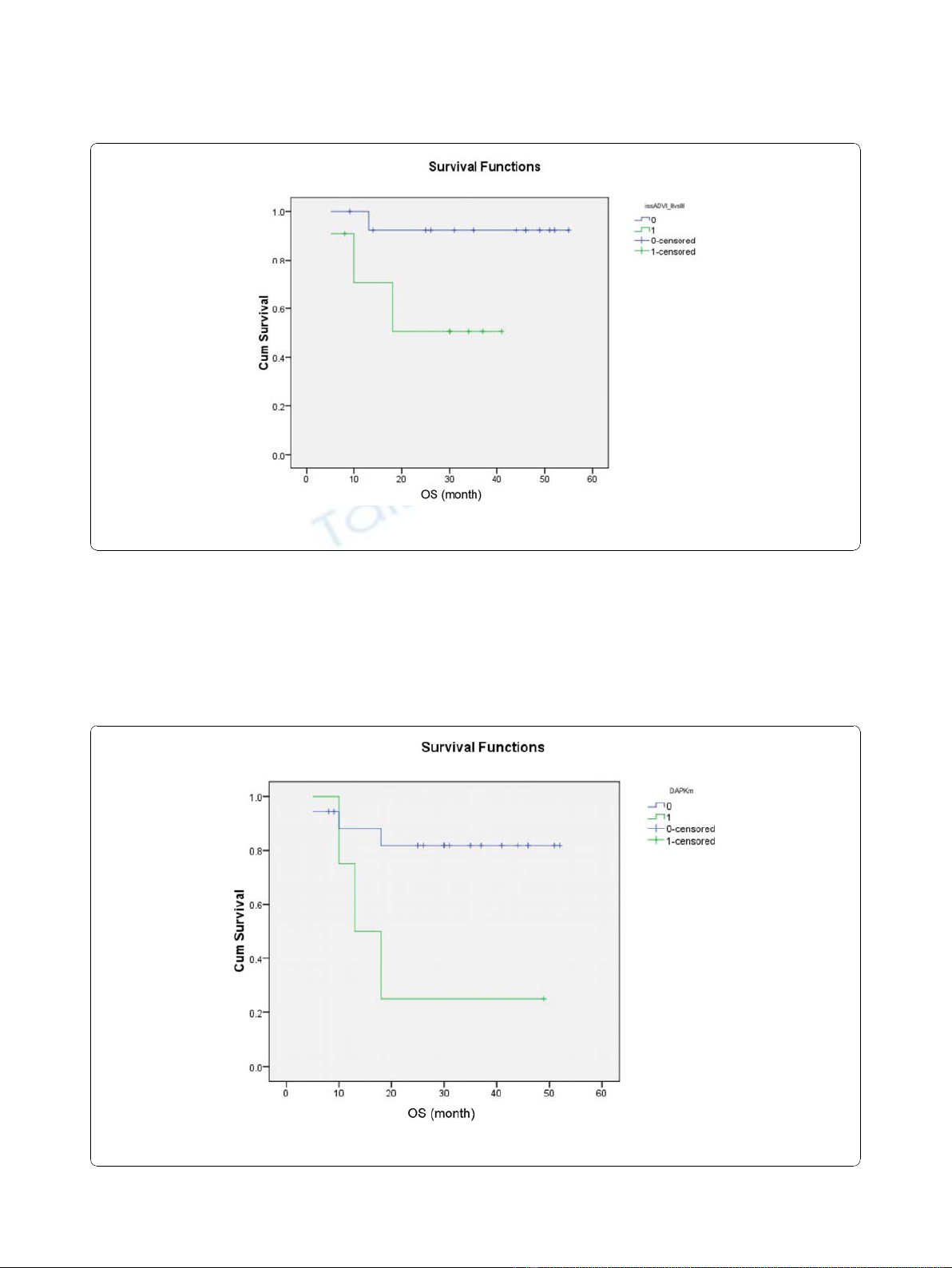 Figure 5 Impact of the presence (green line) and absence of (blue line) DAPK methylation on OS, showing inferior survival in patients